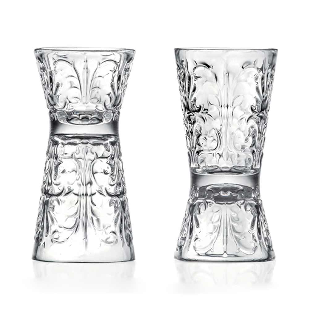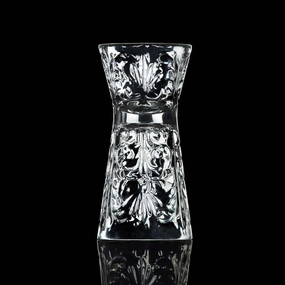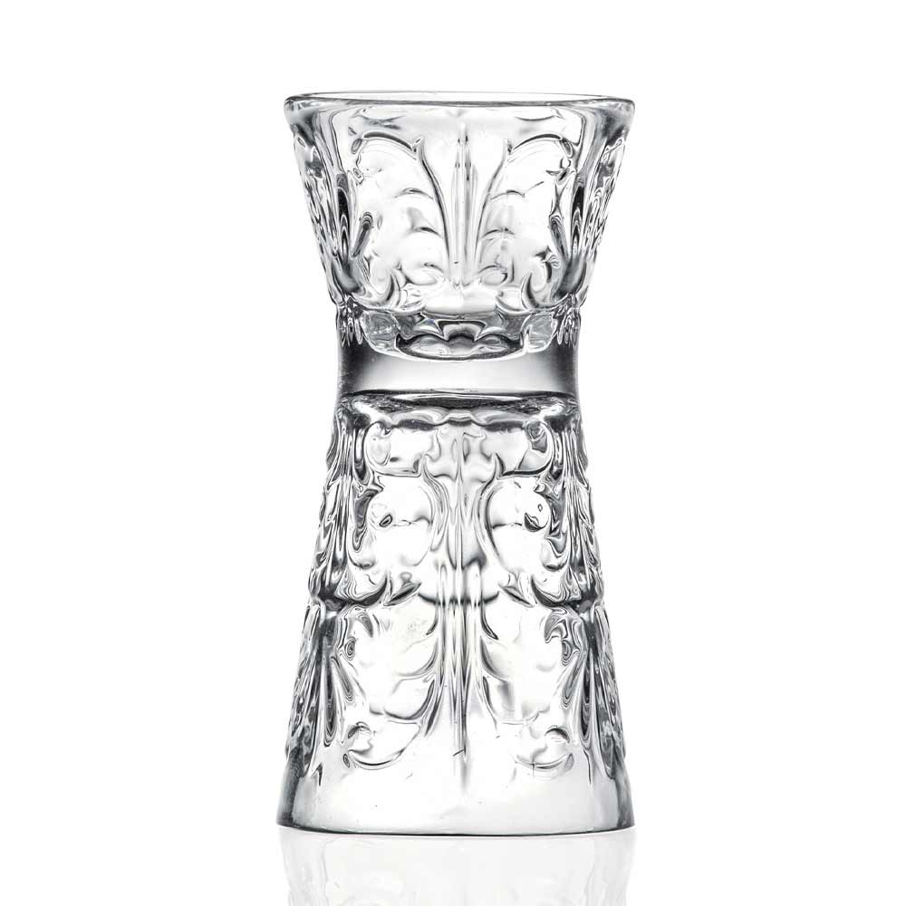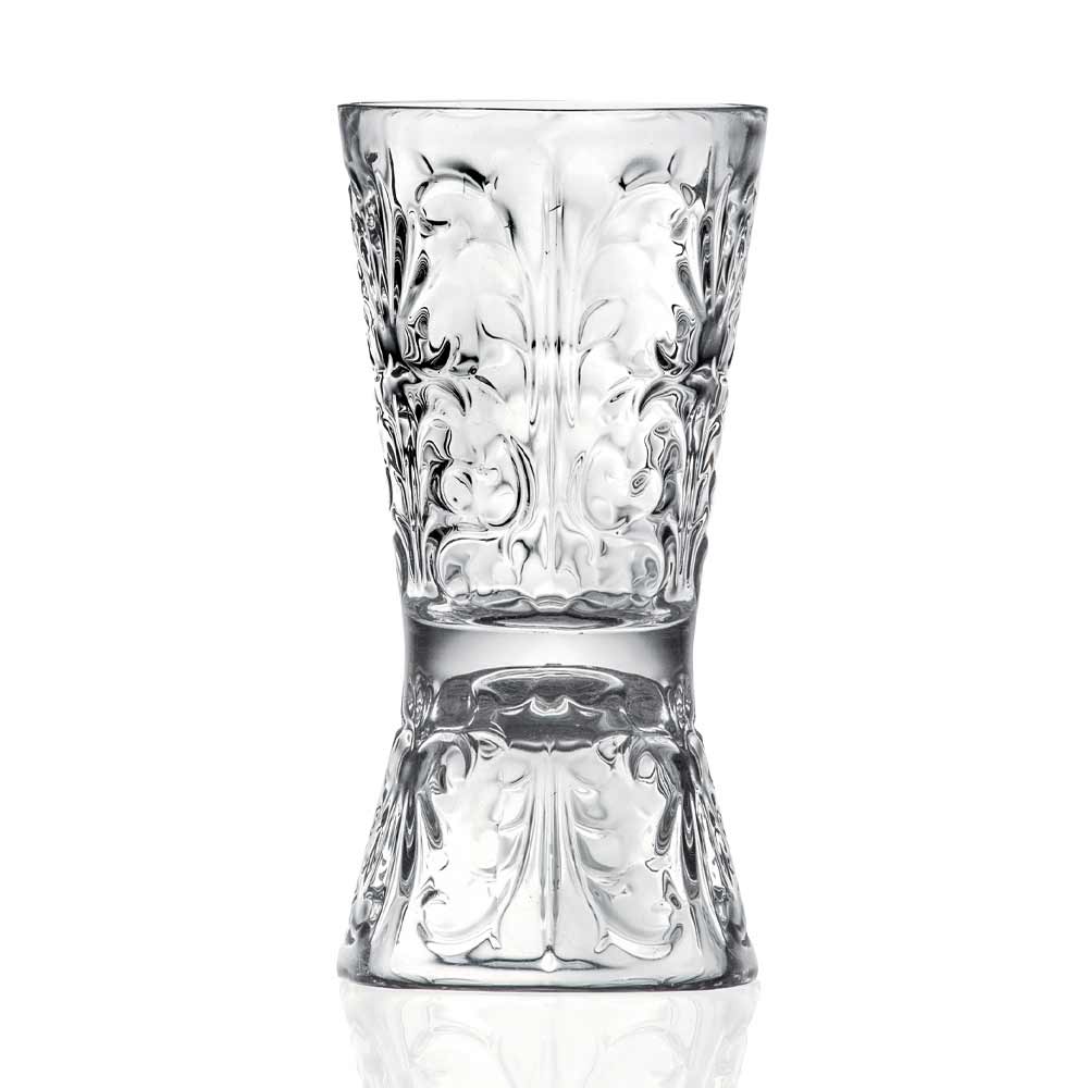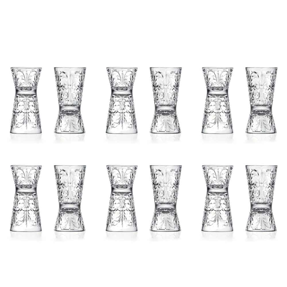 Luxury design jigger glasses in decorated eco crystal, 12 pieces of 100% made in Italy quality.