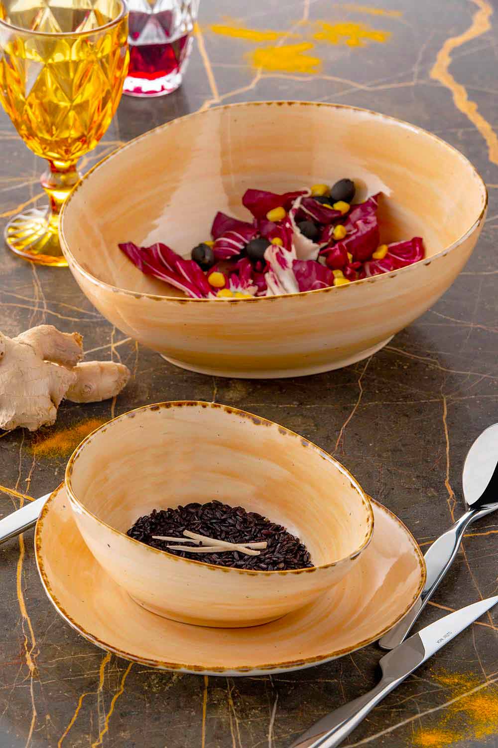 It is a collection with an artisanal taste, with sculptural forms and soft curves , inspired by the aromas and colors of spices , capable of bringing authenticity back to the table and rediscovering ancient traditions. From the design adaptable to all foods and all environments, capacious and predisposed to gourmet decorations , the service is made even more unique by the exclusive colors that recall the raw materials and natural authenticity of the different territories, with their typicality and processing techniques .