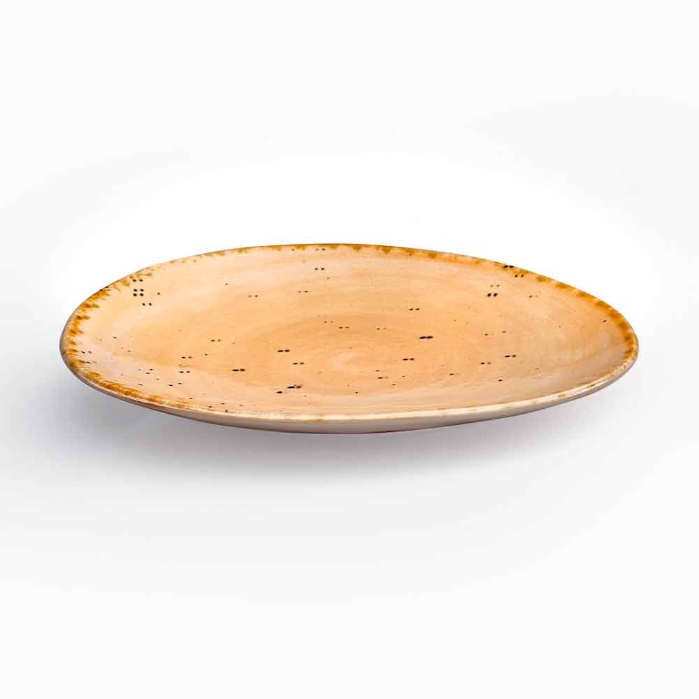Originality : the irregular shapes, the decorations with imprecise brushstrokes and with a speckled effect finished and painted by hand and the antiqued edge, highlight the rustic and earthy style of the collection. Every difference between one piece and another is to be considered as an additional characteristic of value and personality, making each piece unique.