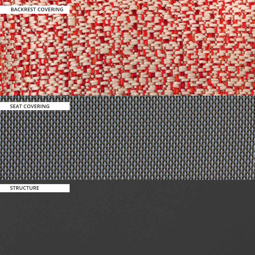 metallic sand gray aluminum, papyrus textilene and salmon melange fabric;