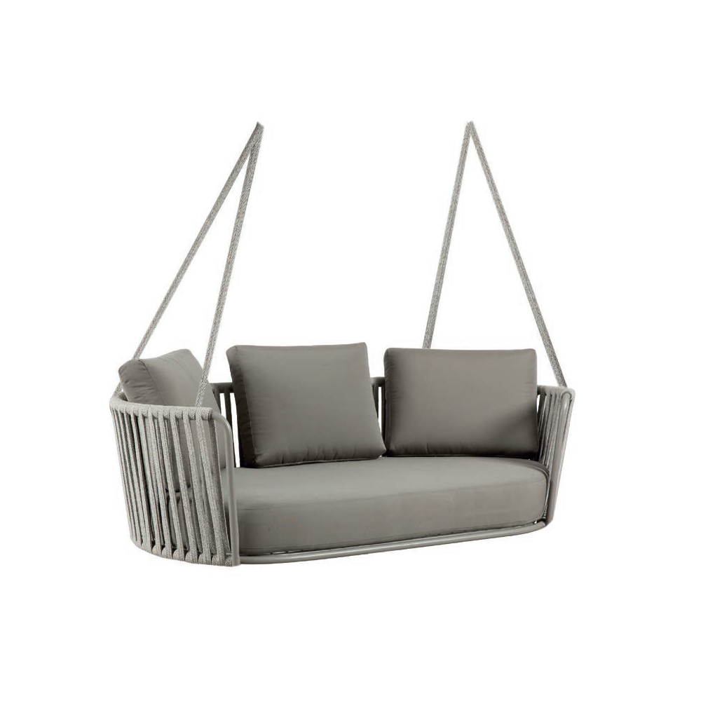 2-seater outdoor rocking chair in metal and rope with Made in Italy fabric seat.