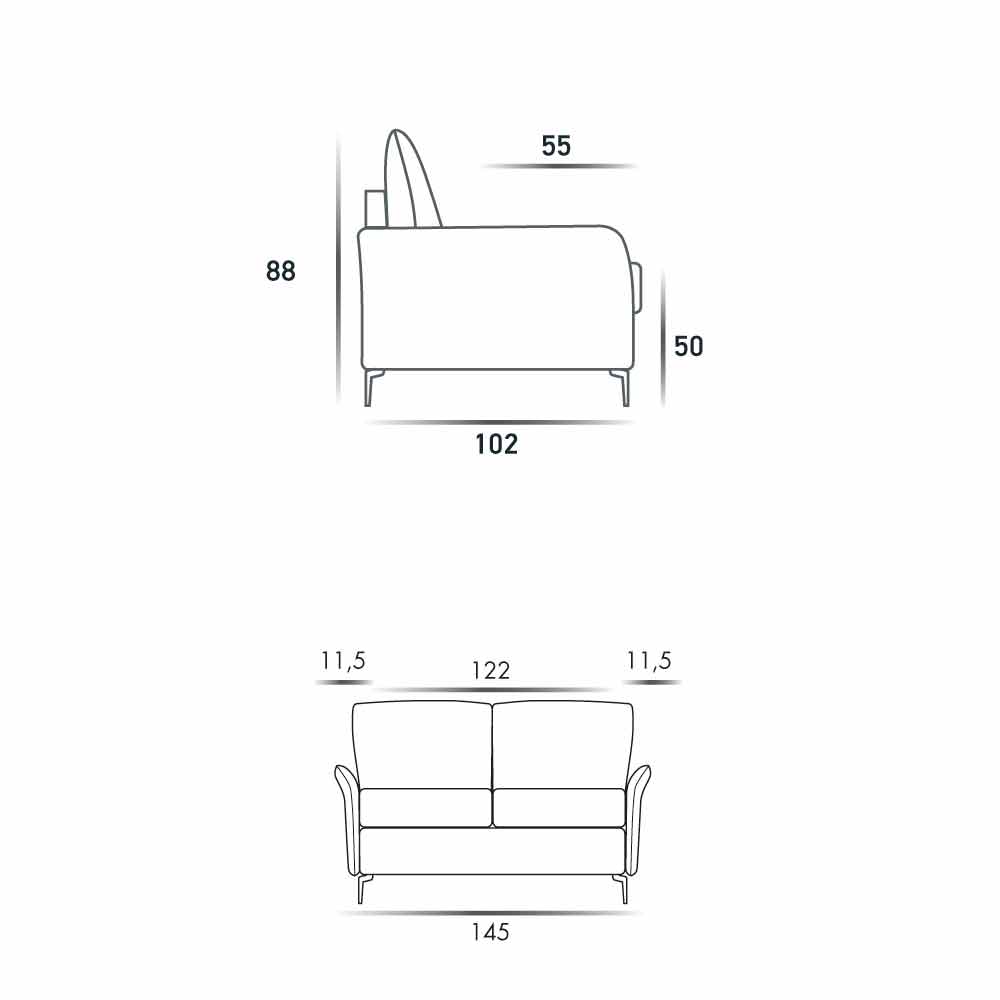 Modern design two-seater sofa L.145 cm eco-leather / Erica fabric, made in Italy