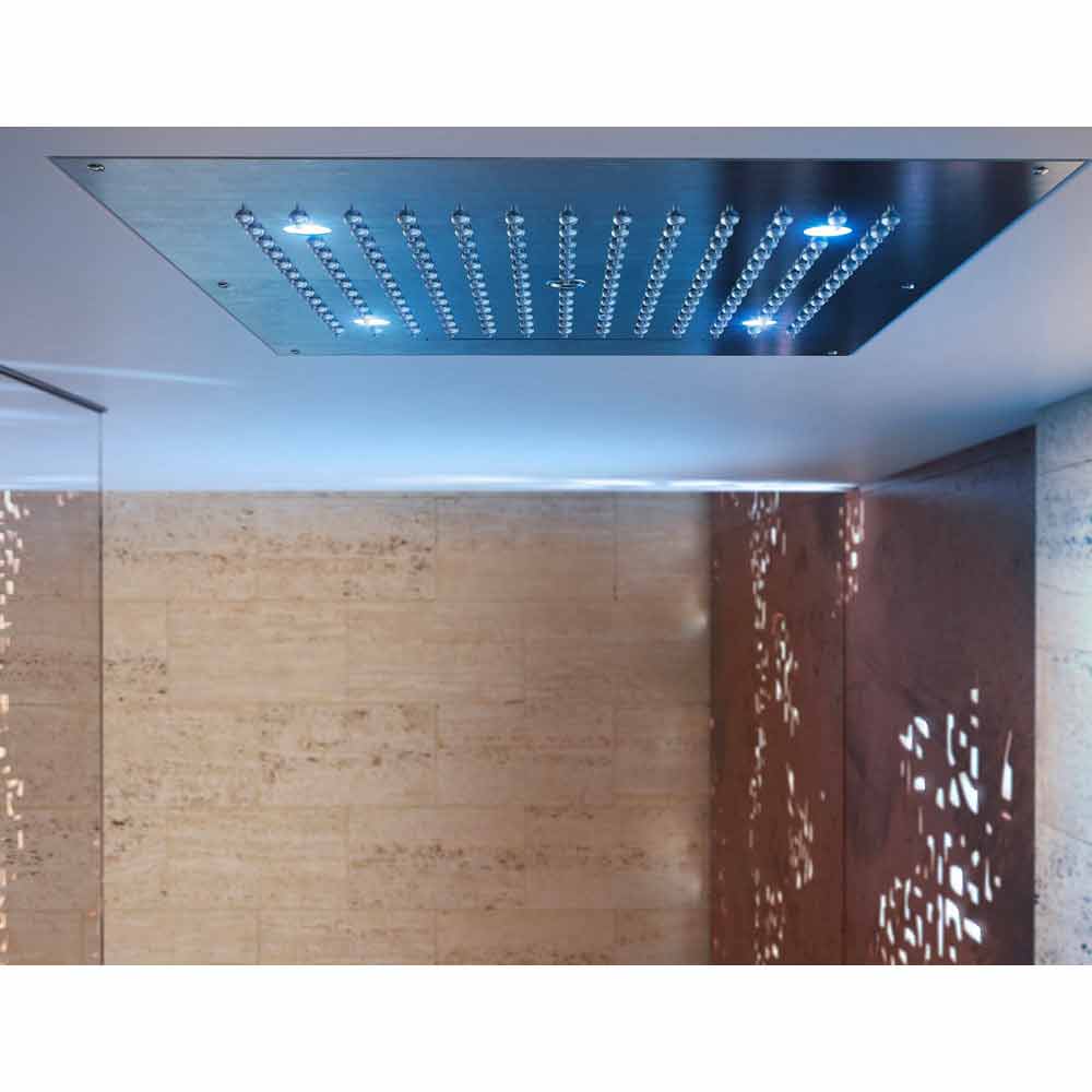 Only 16 Litres per minute of water are required for a good function of the Dream shower heads. It is not the water pressure to determinate the good performance, but the water capacity of the tap. The shower head in fact, when installed parallel to the floor, delivers a “free cascade spray”, like a soft tropical rain. With the installation of the Dream Shower heads it is recommended to use a mixer which can delivers at least 25 Litres of water per minutes. Naturally, the higher the flow rate of the faucet, the better the showerhead will work. All Dream shower heads are equipped with a water-drainage device incorporated at the spray head centre, which reduces water build-up to a minimum. Bossini patented system.