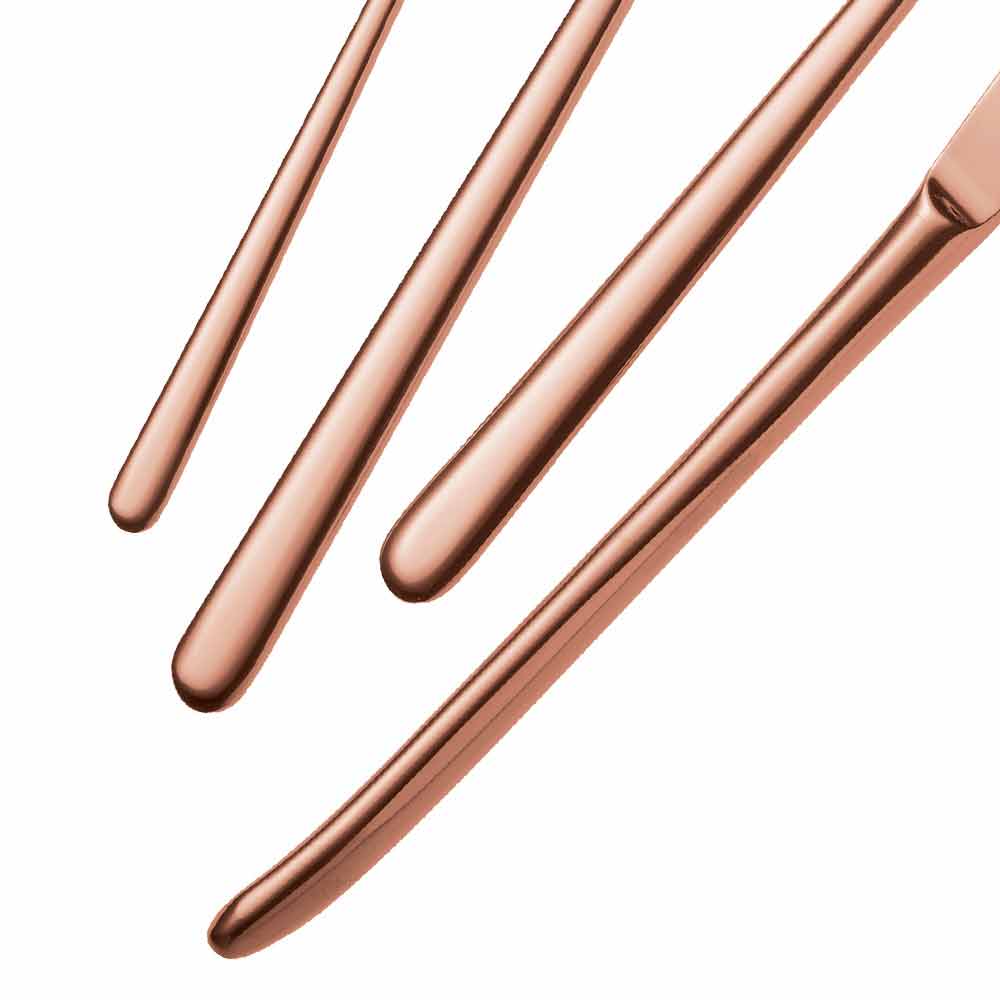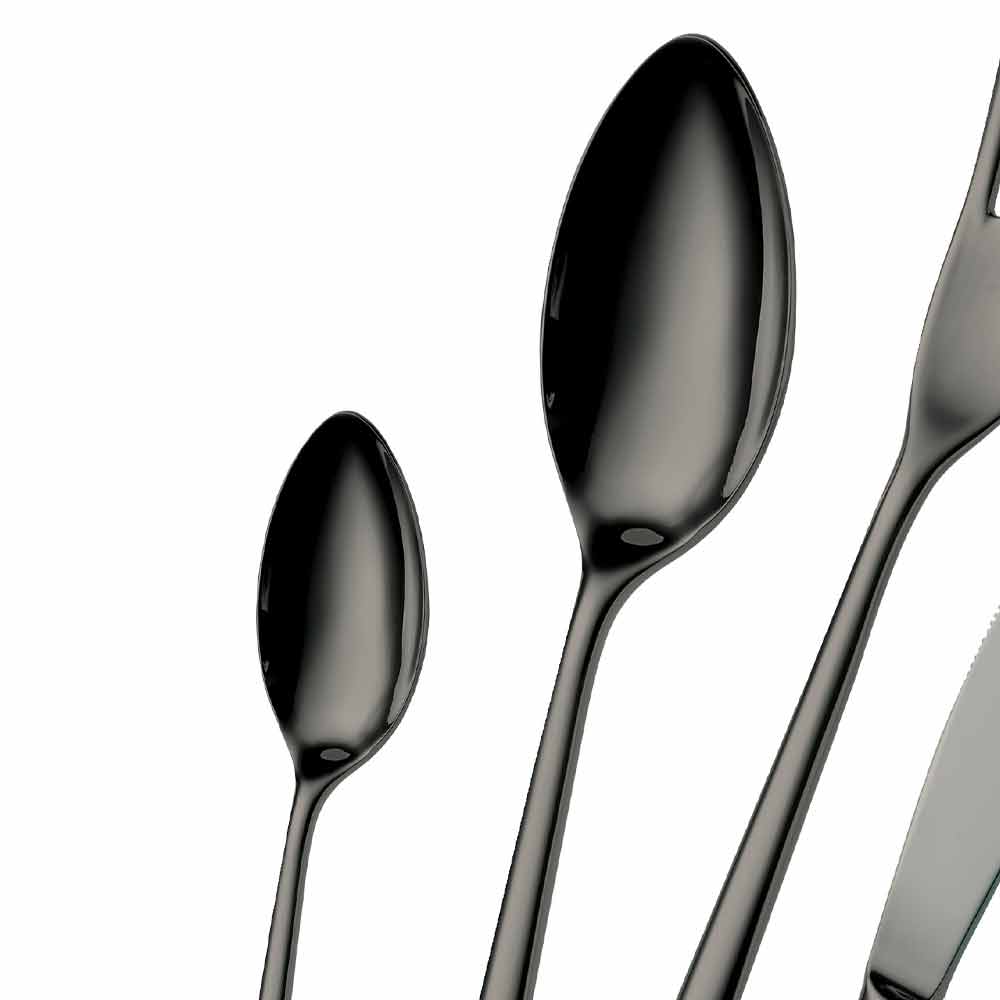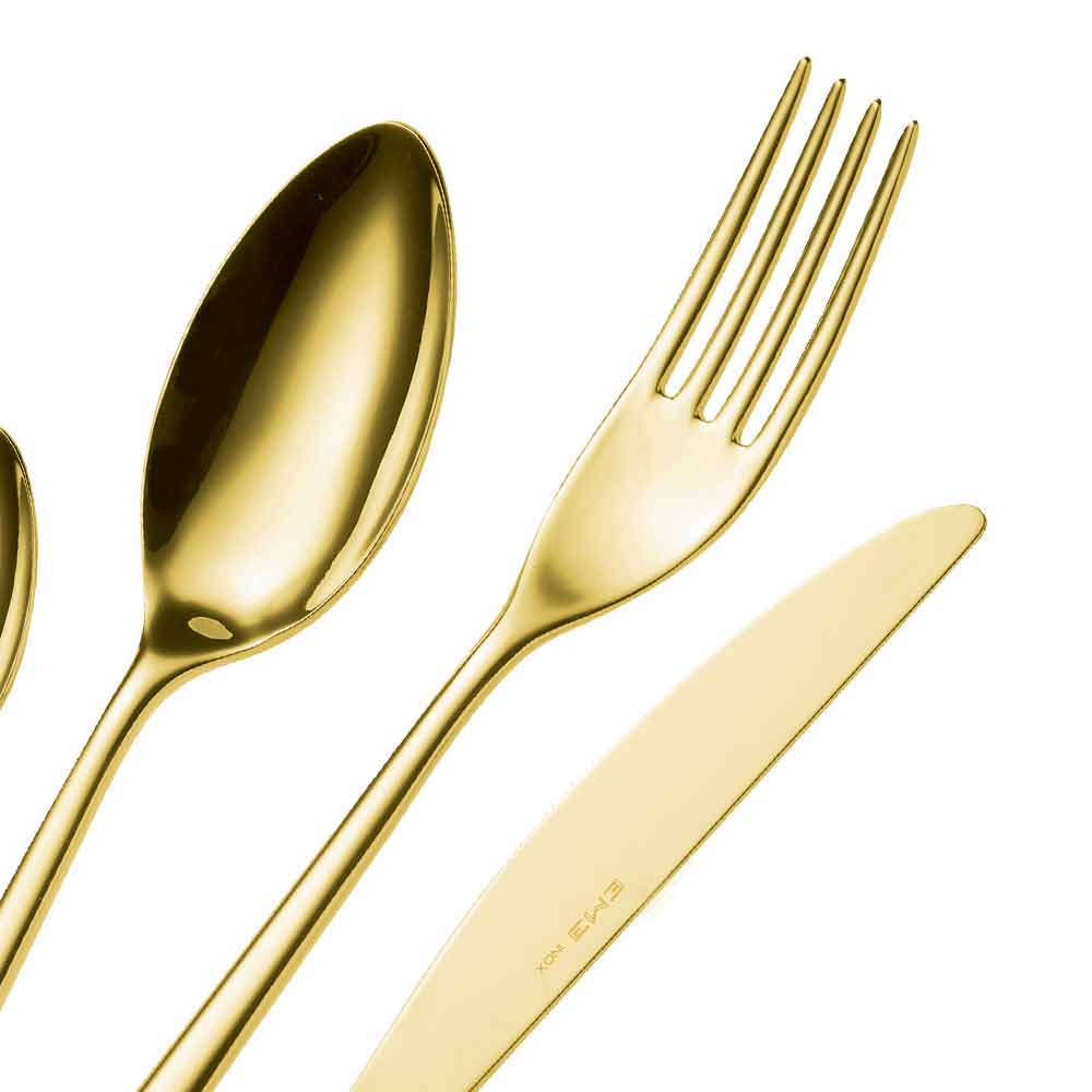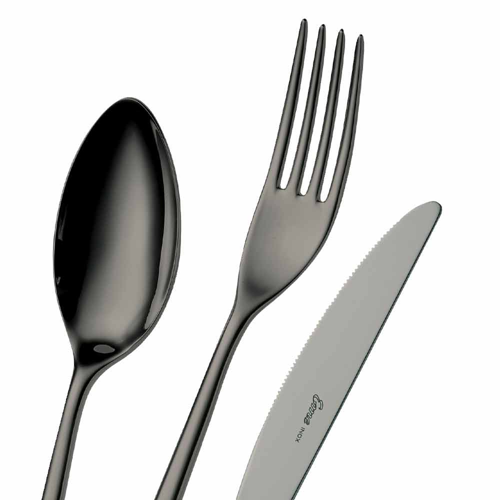 PVD is the acronym for Physical Vapor Deposition, which is a technology used to color steel in special vacuum chambers where very thin metal films are steam sprayed, which condense on the cutlery. This treatment, with a range of wonderful shades of color, in addition to embellishing the cutlery, makes them more