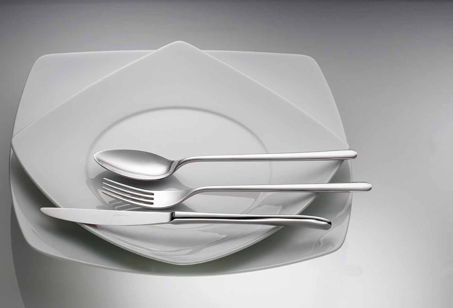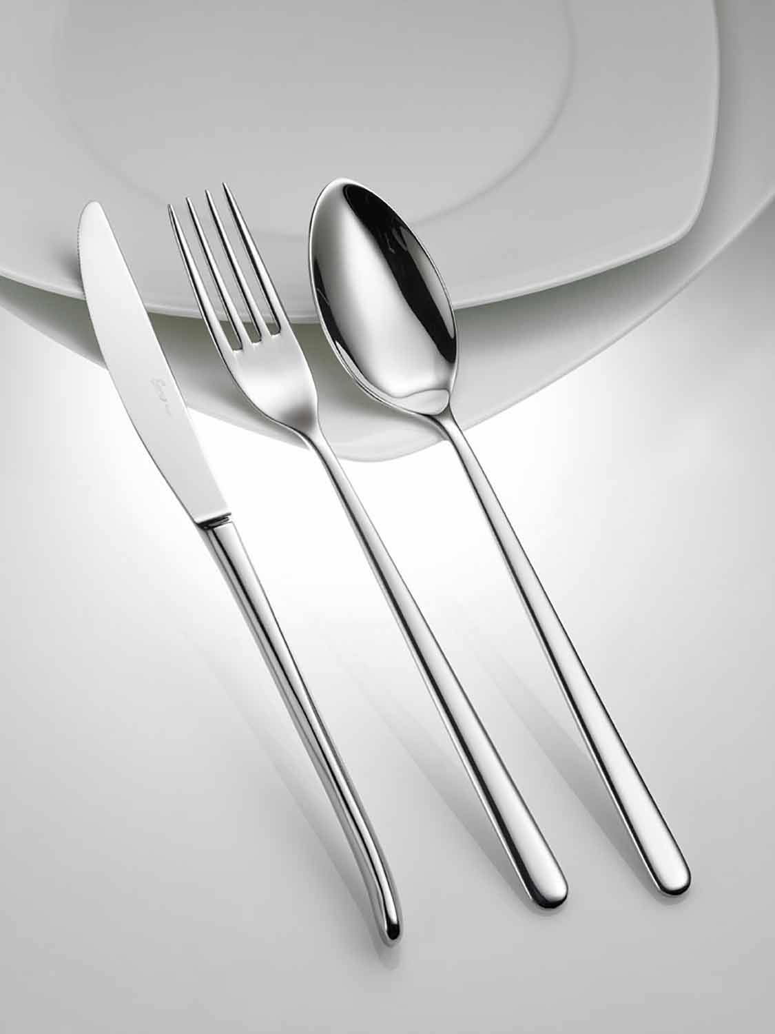 24 Cutlery in polished or sandblasted stainless steel 5 finishes, sleek and elegant design made in Italy.