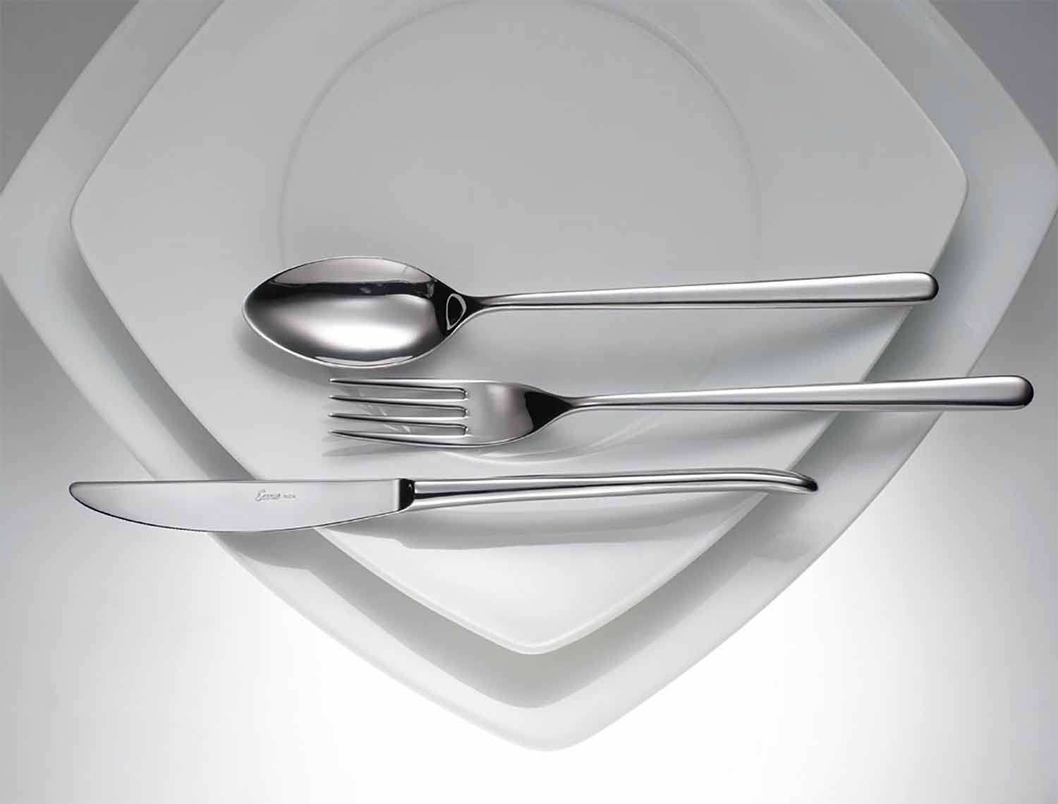 stainless steel cutlery, that is with 18% chromium and 10% nickel, which guarantee excellent resistance to corrosion and ease of cleaning with an excellent hygienic coefficient.