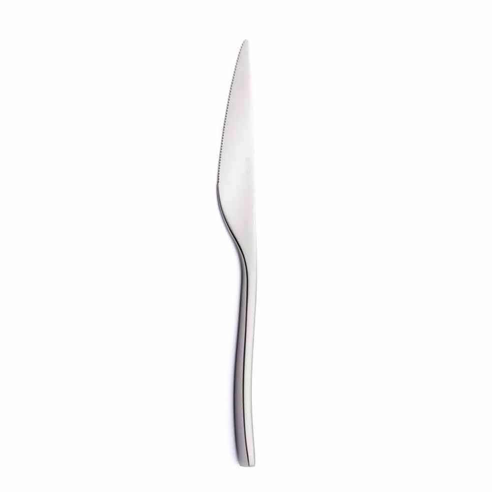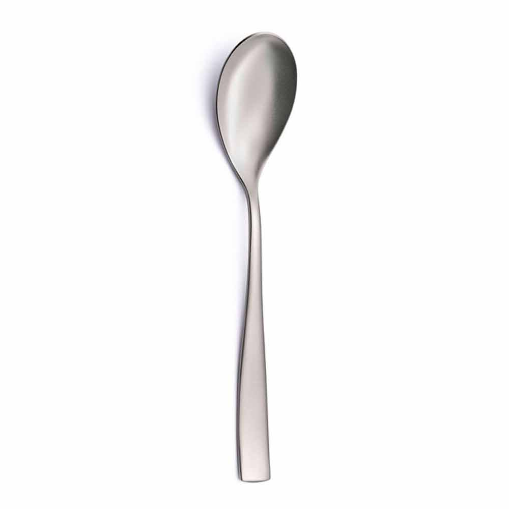 sandblasted finish , characterized by a low roughness, is obtained with the micro shot peening technique: a surface treatment of the steel performed cold with pressure-cast ceramic microspheres. The object thus acquires a particular aesthetic impact because the reflected light is diffused from the surface. The pleasant velvety opaque effect obtained allows a good grip, as well as making the cutlery elegant with a precious play of light.