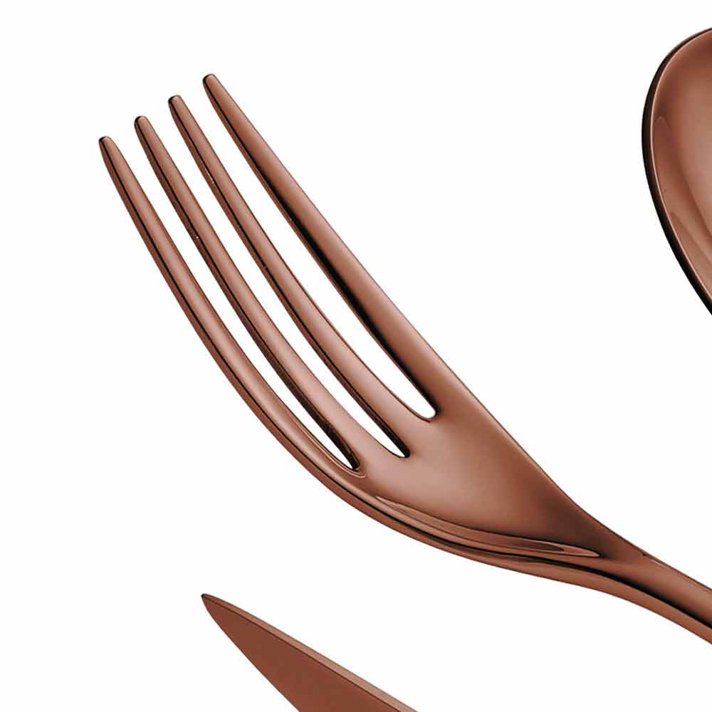 PVD is the acronym for Physical Vapor Deposition, which is a technology used to color steel in special vacuum chambers where very thin metal films are steam sprayed, which condense on the cutlery. This treatment, with a range of wonderful shades of color, in addition to embellishing the cutlery, makes them more