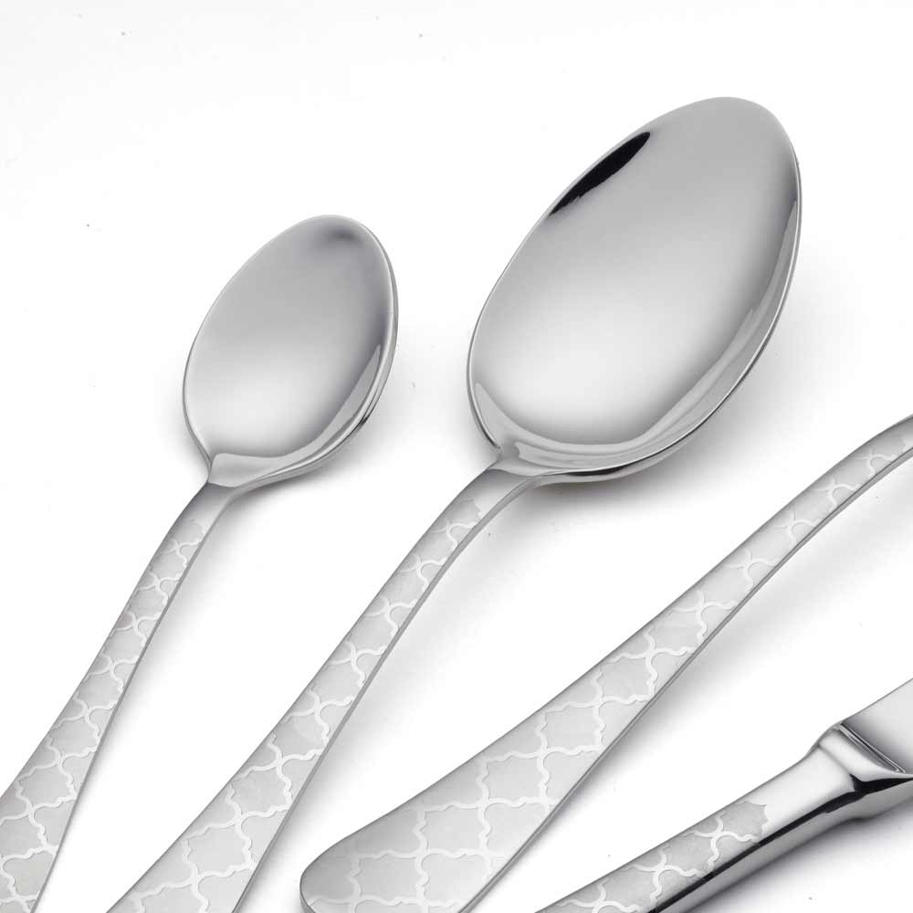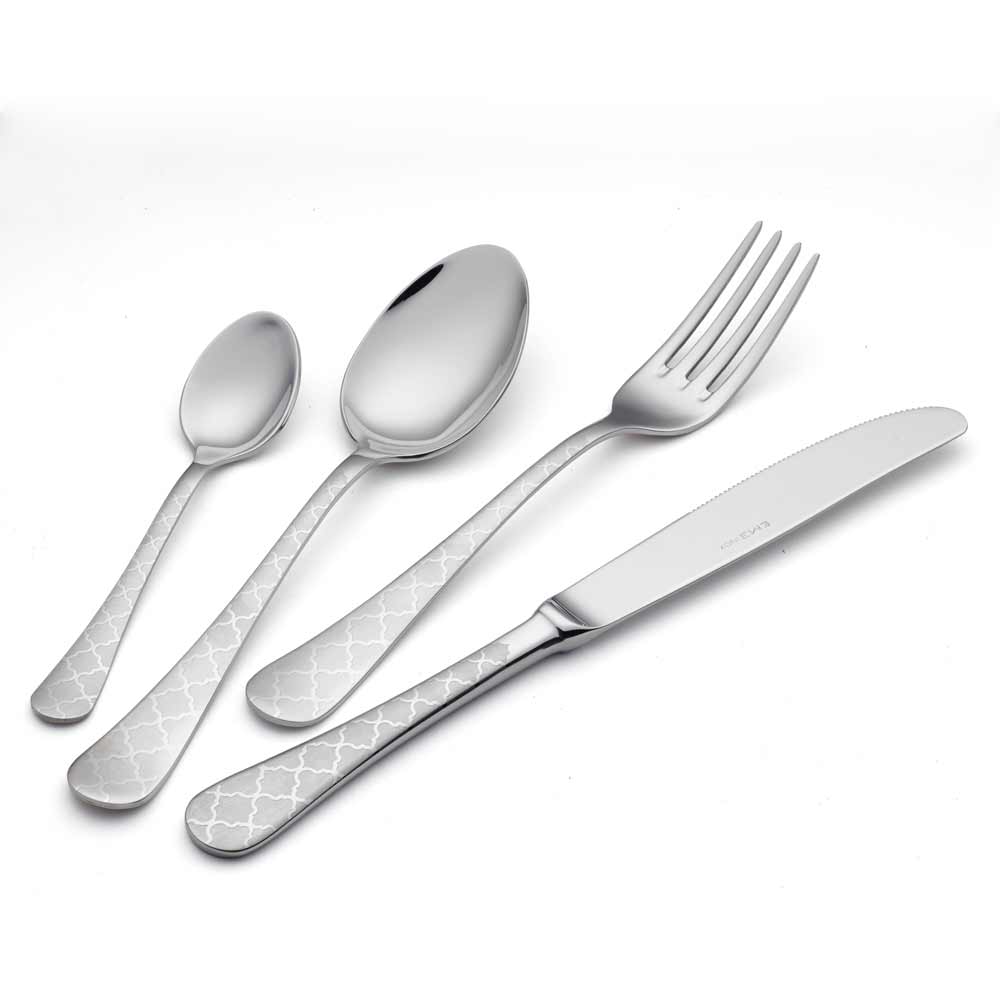 linear design of the cutlery, with rounded and graceful lines, easily adapts to any type of dish service.