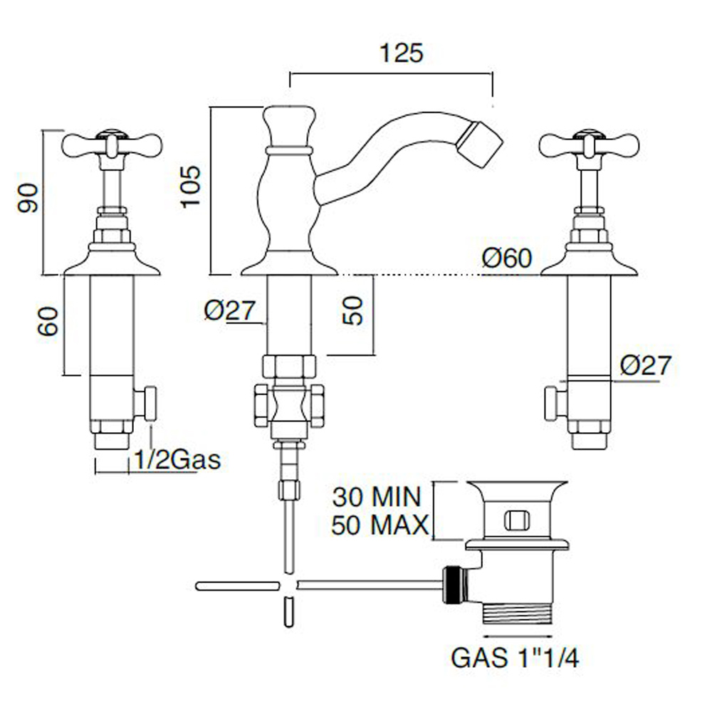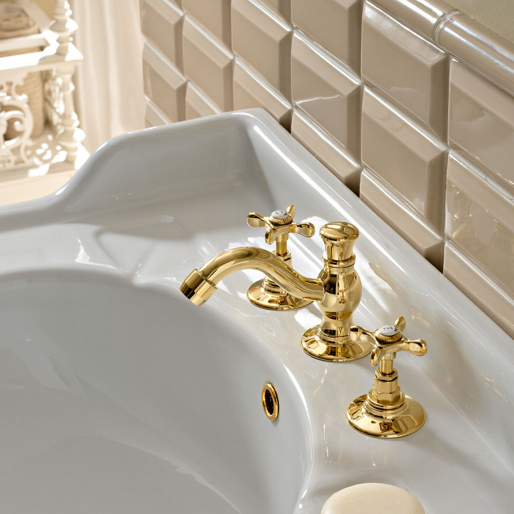 Classic 3-hole basin mixer made of handcrafted brass made in Italy.