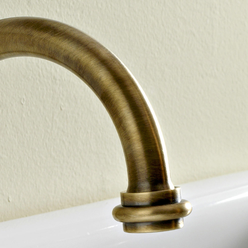 3-hole basin mixer with high spout in handcrafted brass, classic style made in Italy.