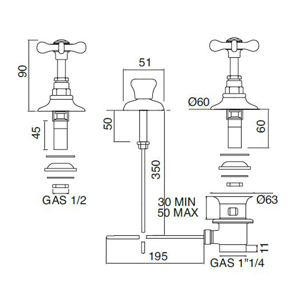 Technical features:- Minimum pressure for good operation: 0.5 bar.