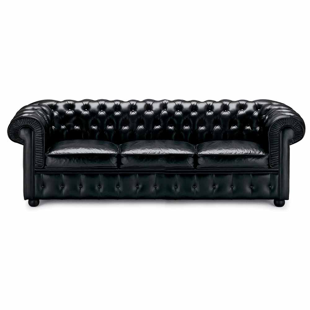 Classic style 3 seater sofa upholstered in leather with wooden feet Made in Italy.