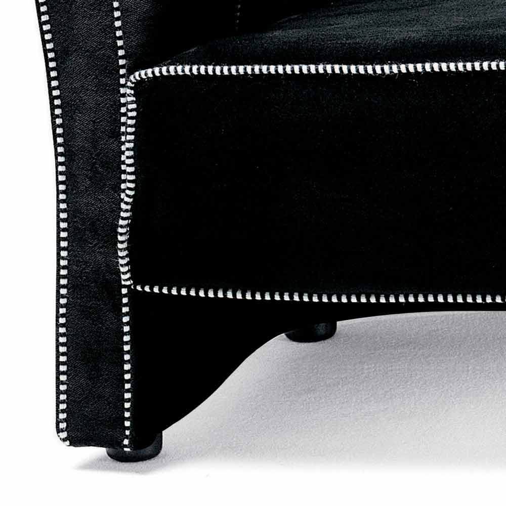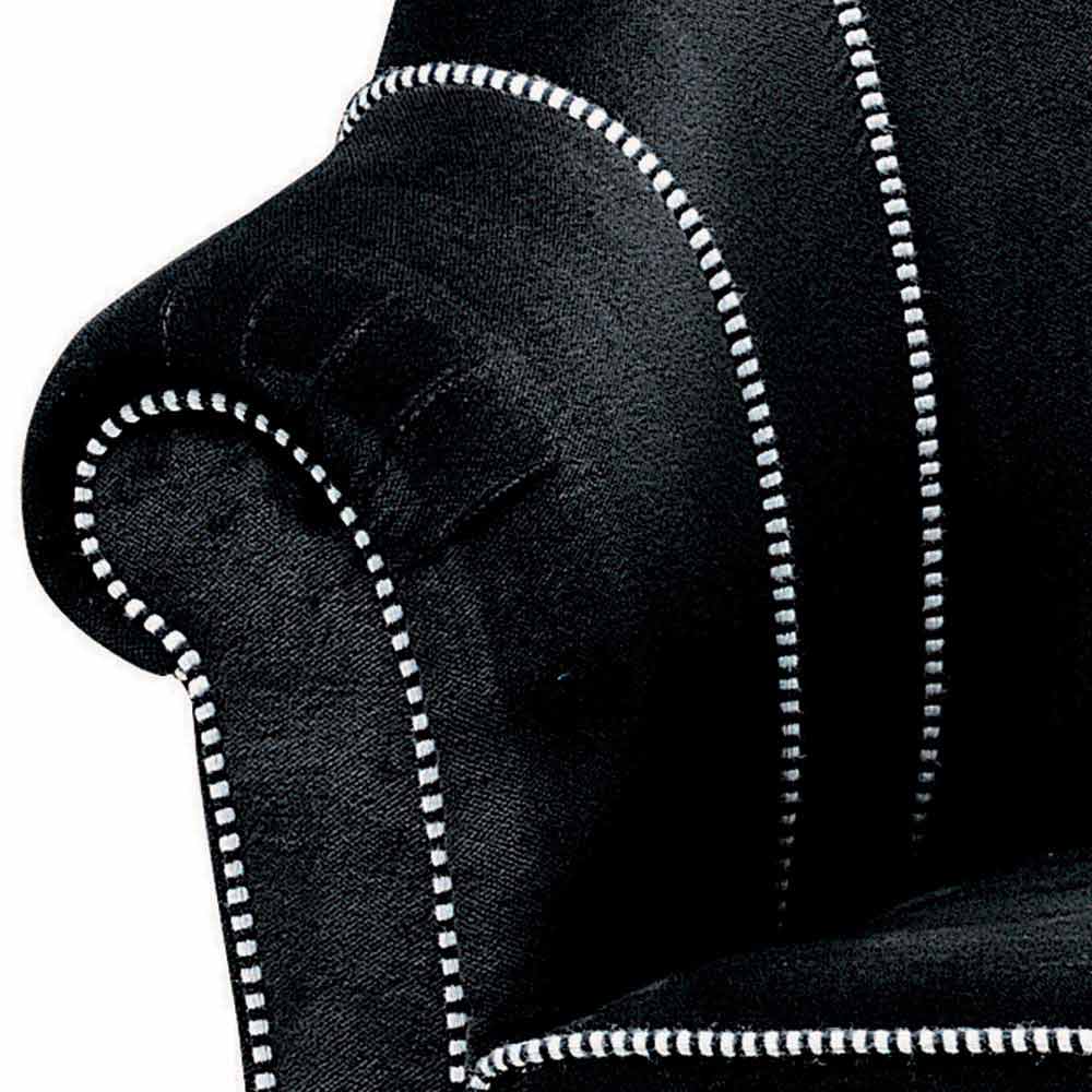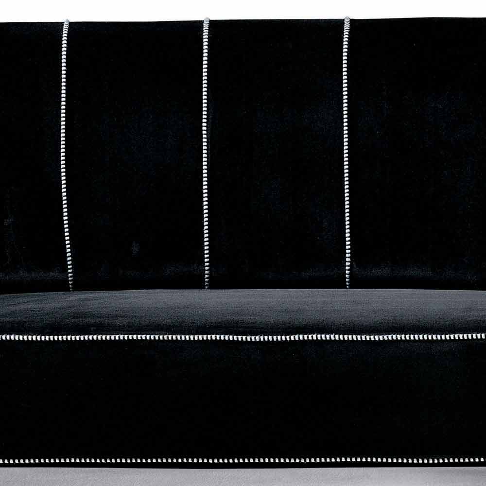 3 seater sofa made in Italy with internal wooden structure covered in polyurethane foam and polyester fiber lining, external covering in black velvet with black and white trimmings ( not removable ). This sofa has a particularly simple and versatile shape that easily adapts to any modern living area thanks to a sober design and essential shapes . To enrich the aesthetics are the contrasting seams that underline the basic features of the sofa, giving a sense of refinement and innovation for a cutting-edge result. Ideal for those who love an elegant furnishing style, this furnishing solution also features a velvet covering, a material that maximizes its comfort even to the touch. The materials chosen and used for the realization of this complement also allow to obtain a particularly welcoming seat, therefore ideal for spending wonderful moments dedicated to relaxation in your living room.