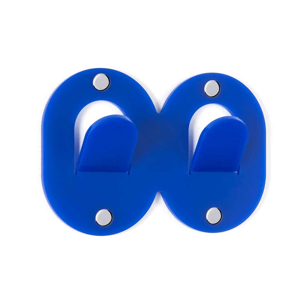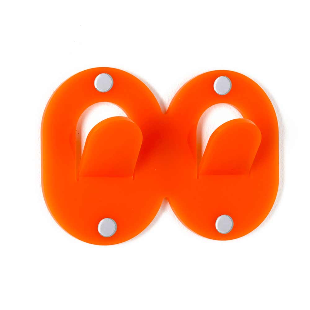 For the home or office, this versatile double hook wall coat rack is made of 100% virgin polymer plexiglass and laser cut to evoke the shapes of a clip.