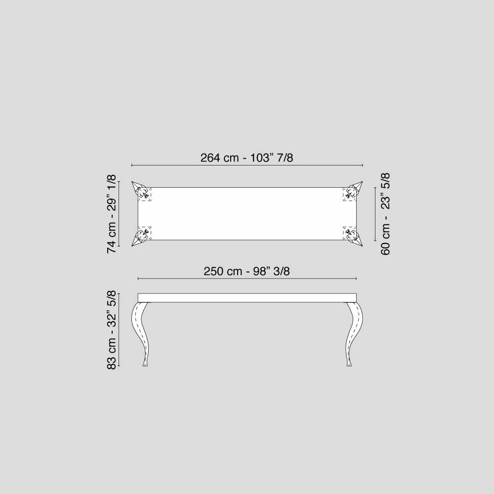 Classic design 4 legs console table Luigi, MDF and steel, made in italy.