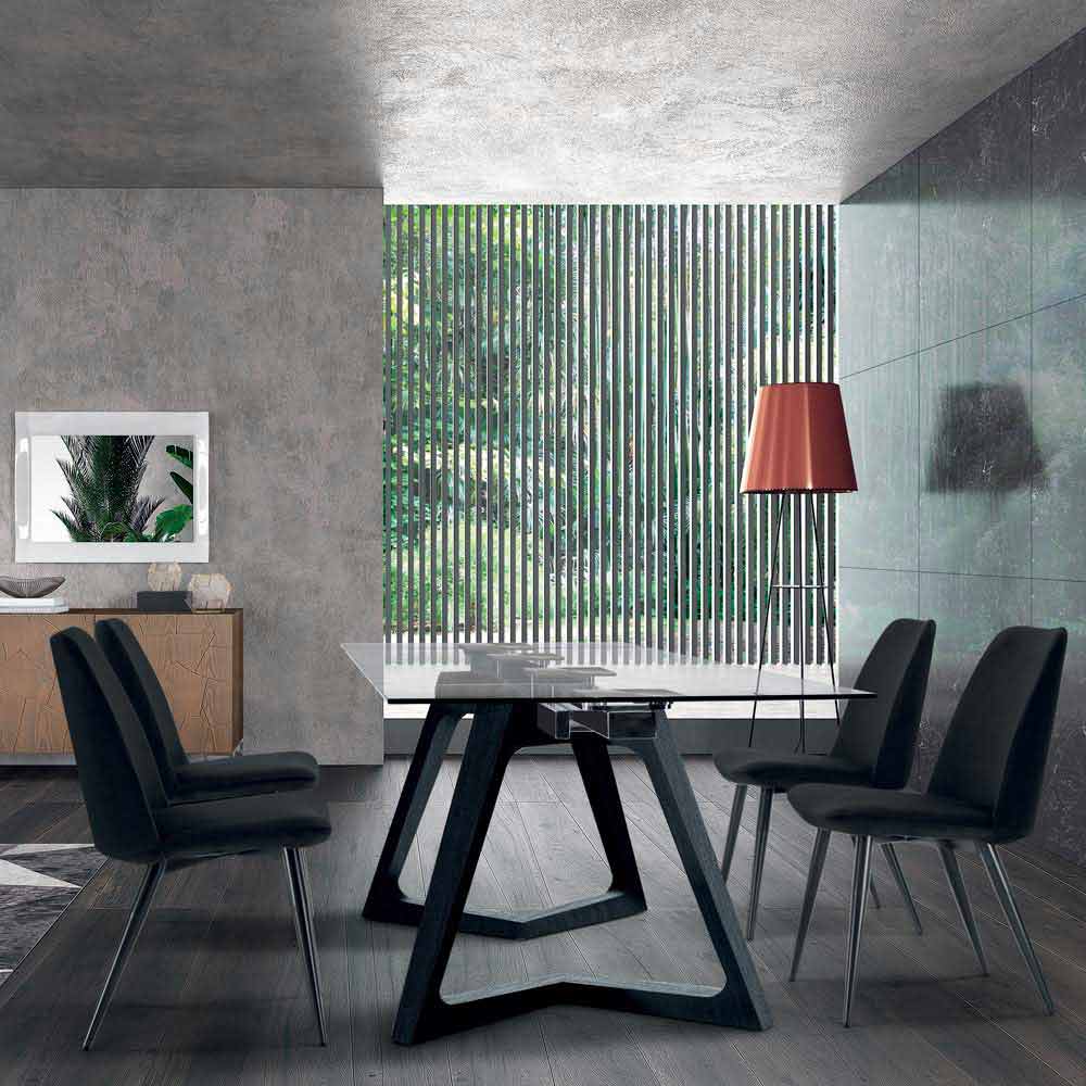 Granella is the perfect modern chair produced in Italy with a black steel base and a padded seat upholstered in velvet . Thanks to its elegant and minimal design it is a versatile piece of furniture and for this reason it is perfect for decorating any dining room or kitchen.
