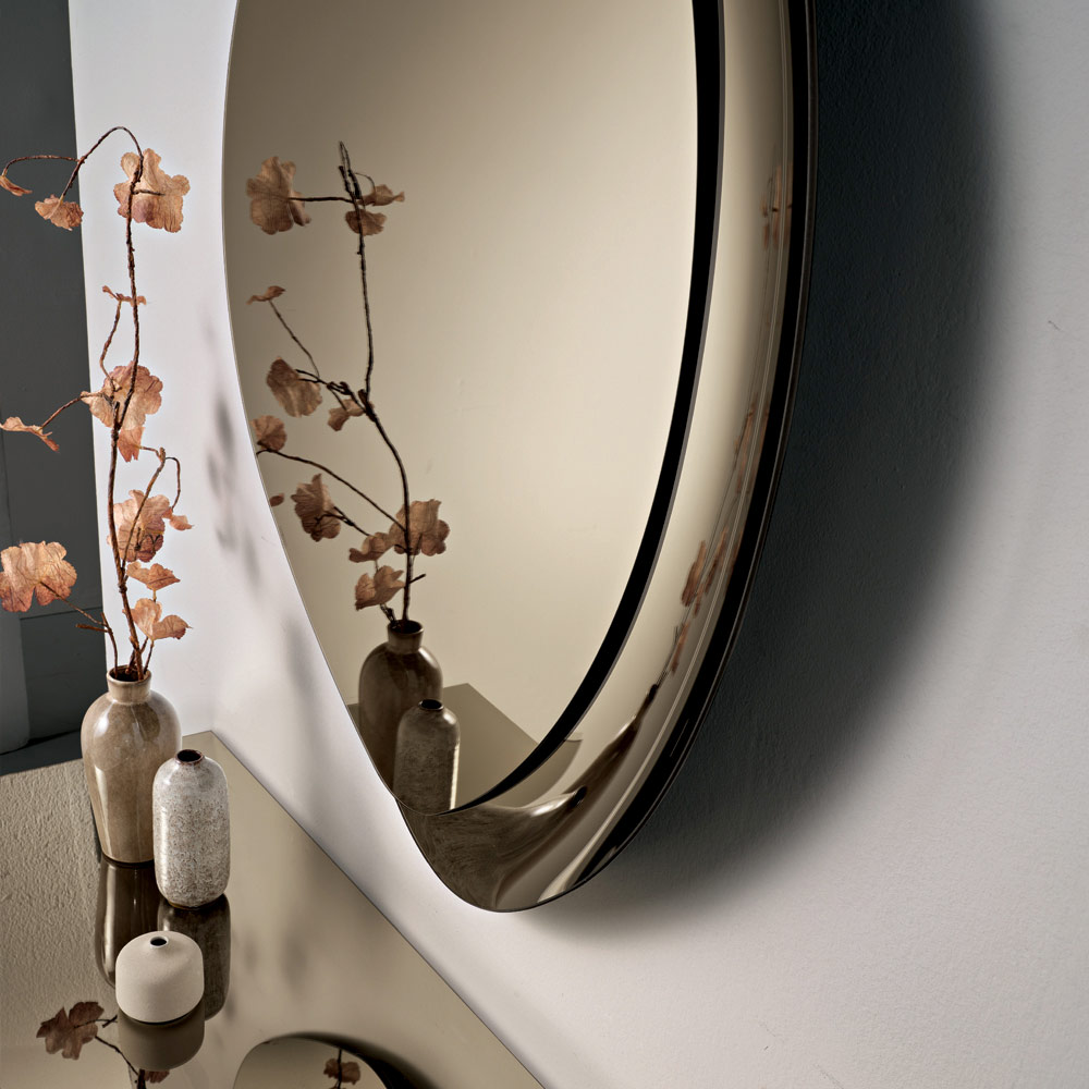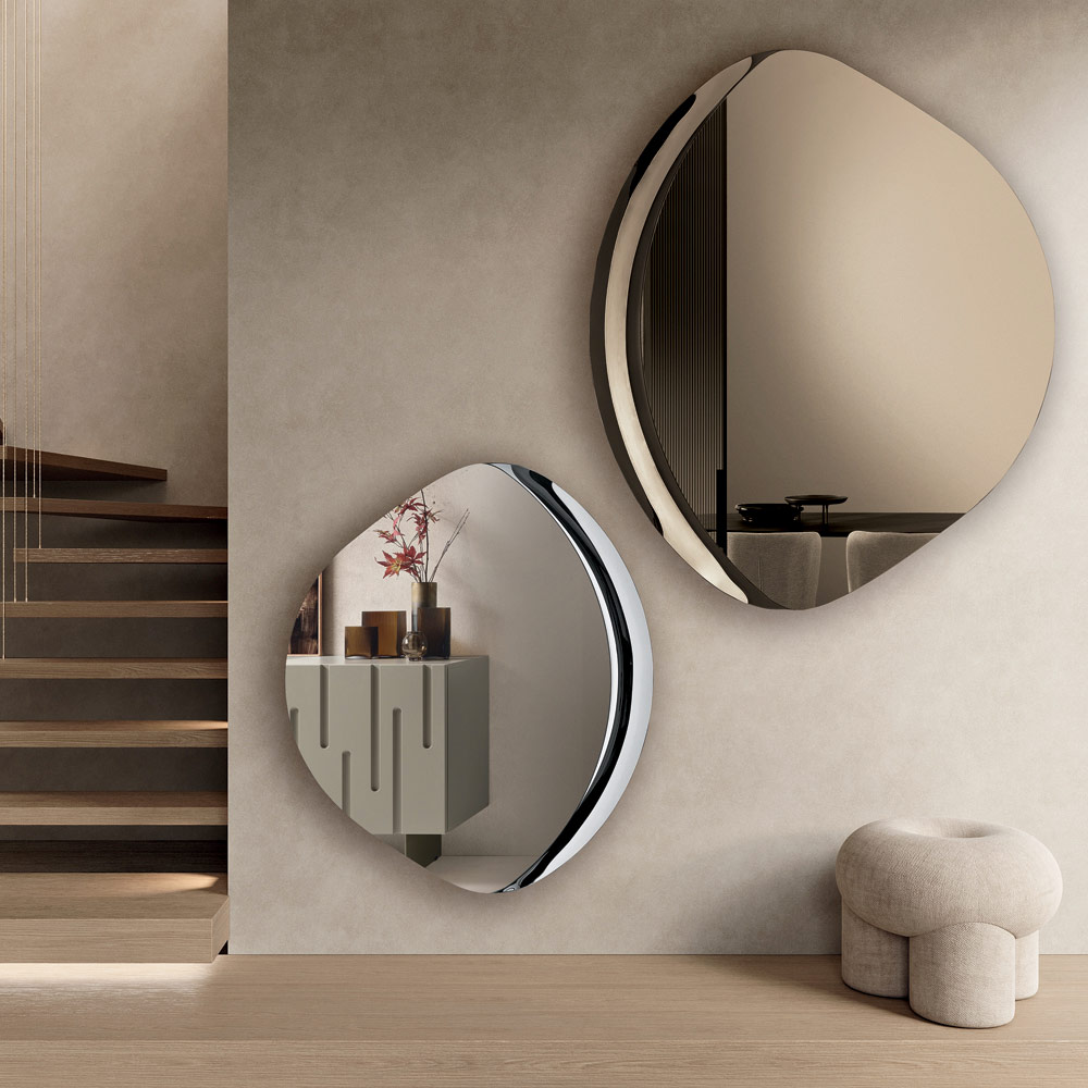 Thanks to its sculptural aesthetic and elegant proportions, this mirror is an ideal furnishing accessory for modern and sophisticated spaces, capable of amplifying light and enriching the wall with a touch of contemporary design.