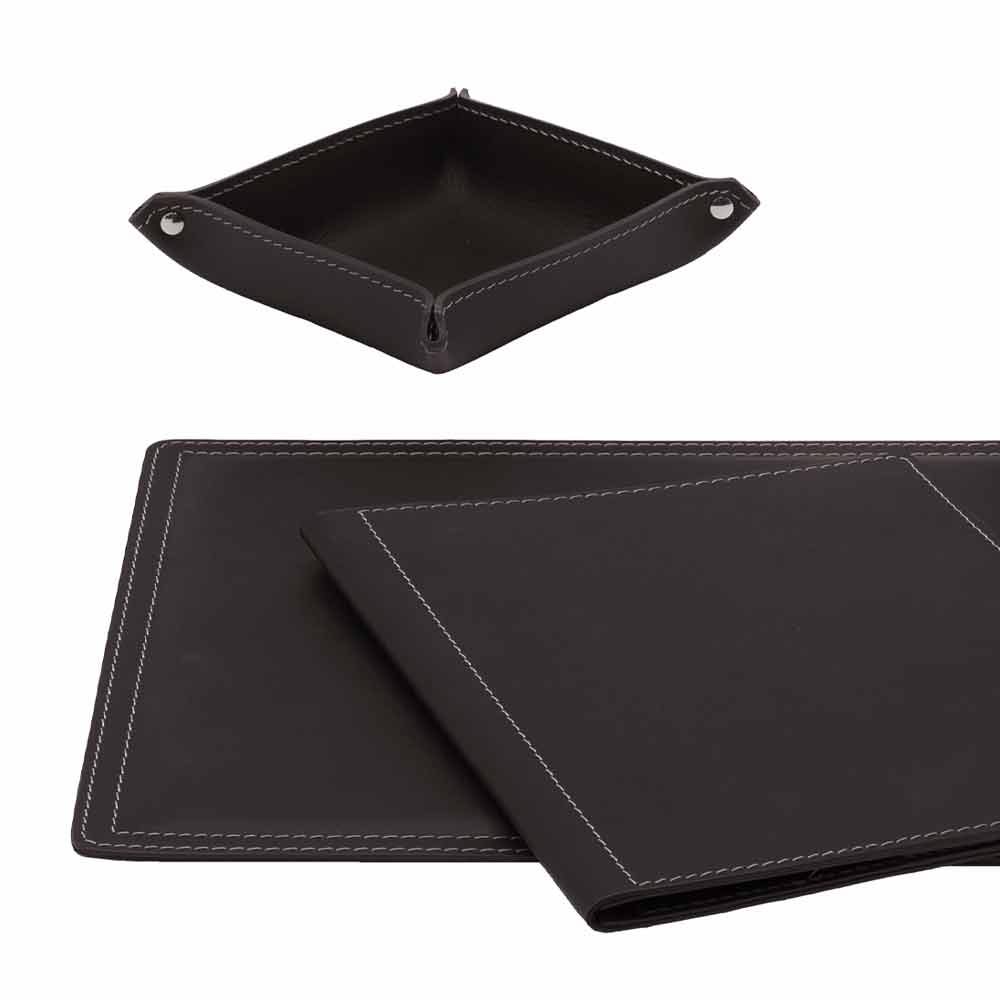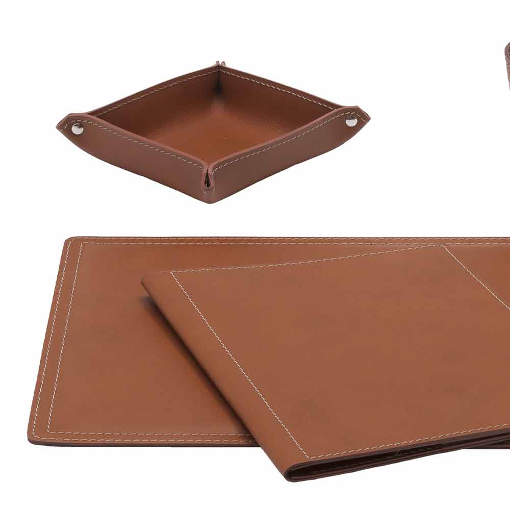 The Ascanio set of office accessories includes functional but at the same time decorative accessories . They are produced in regenerated leather in Italy by skilled craftsmen specialized in the processing of this material.