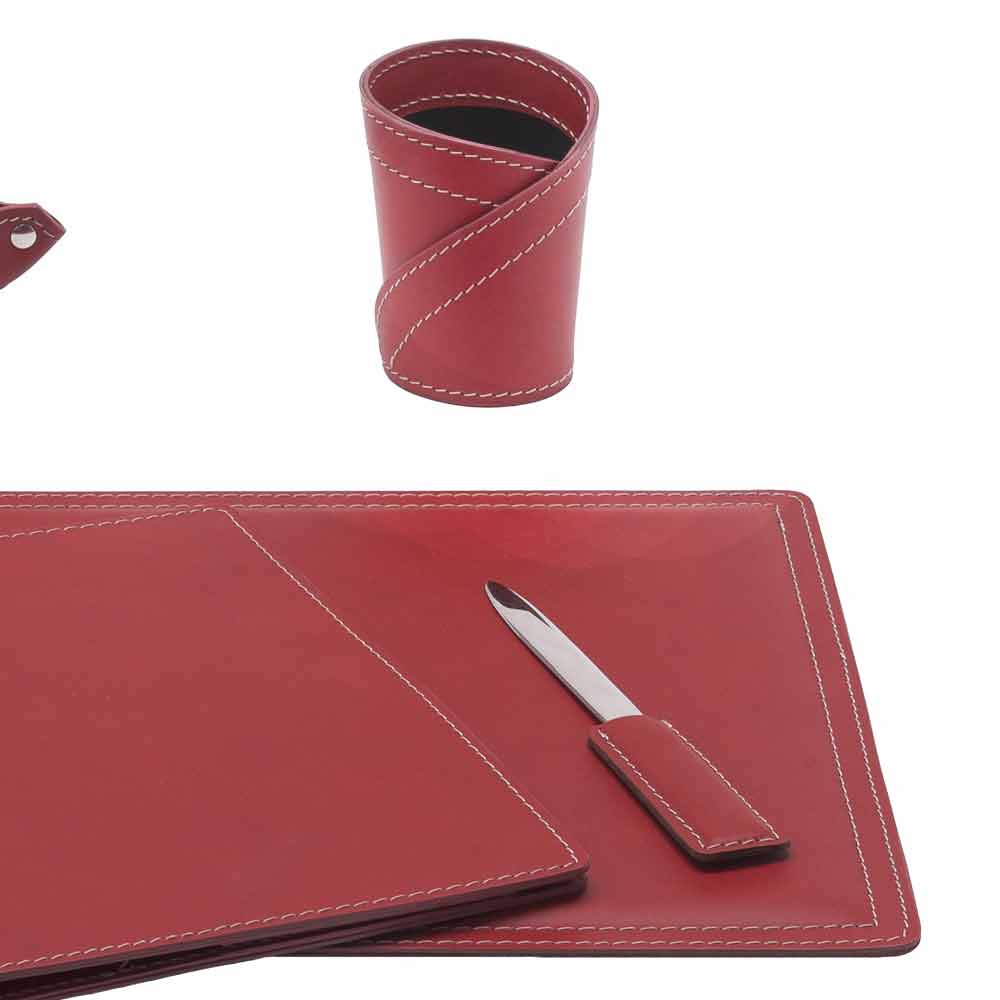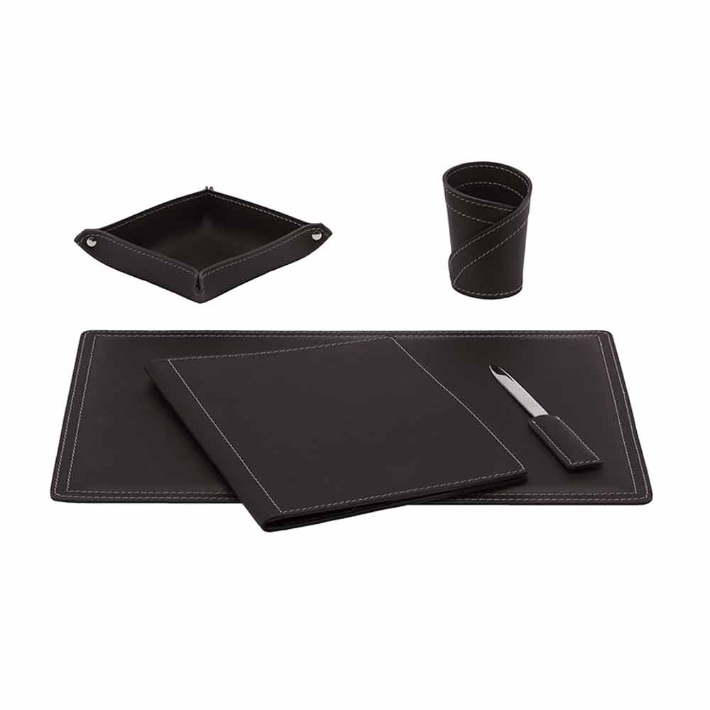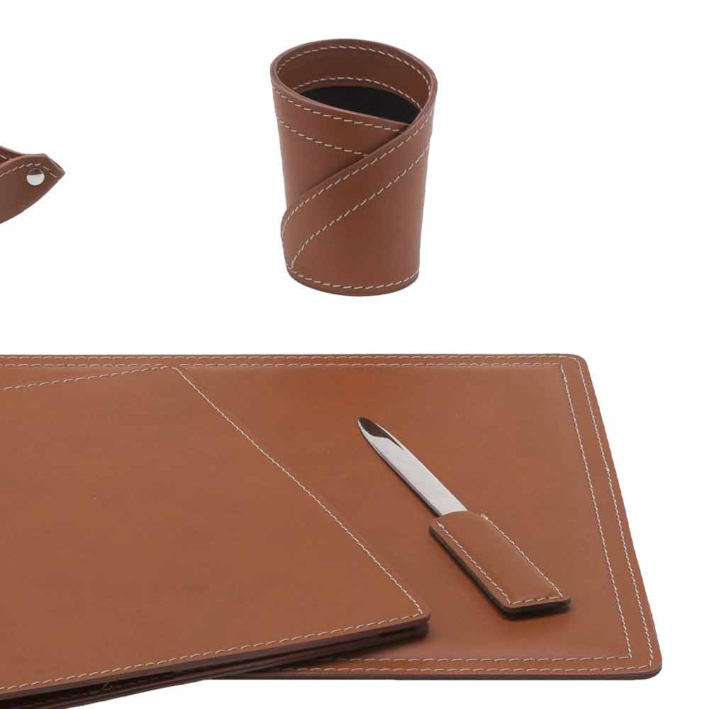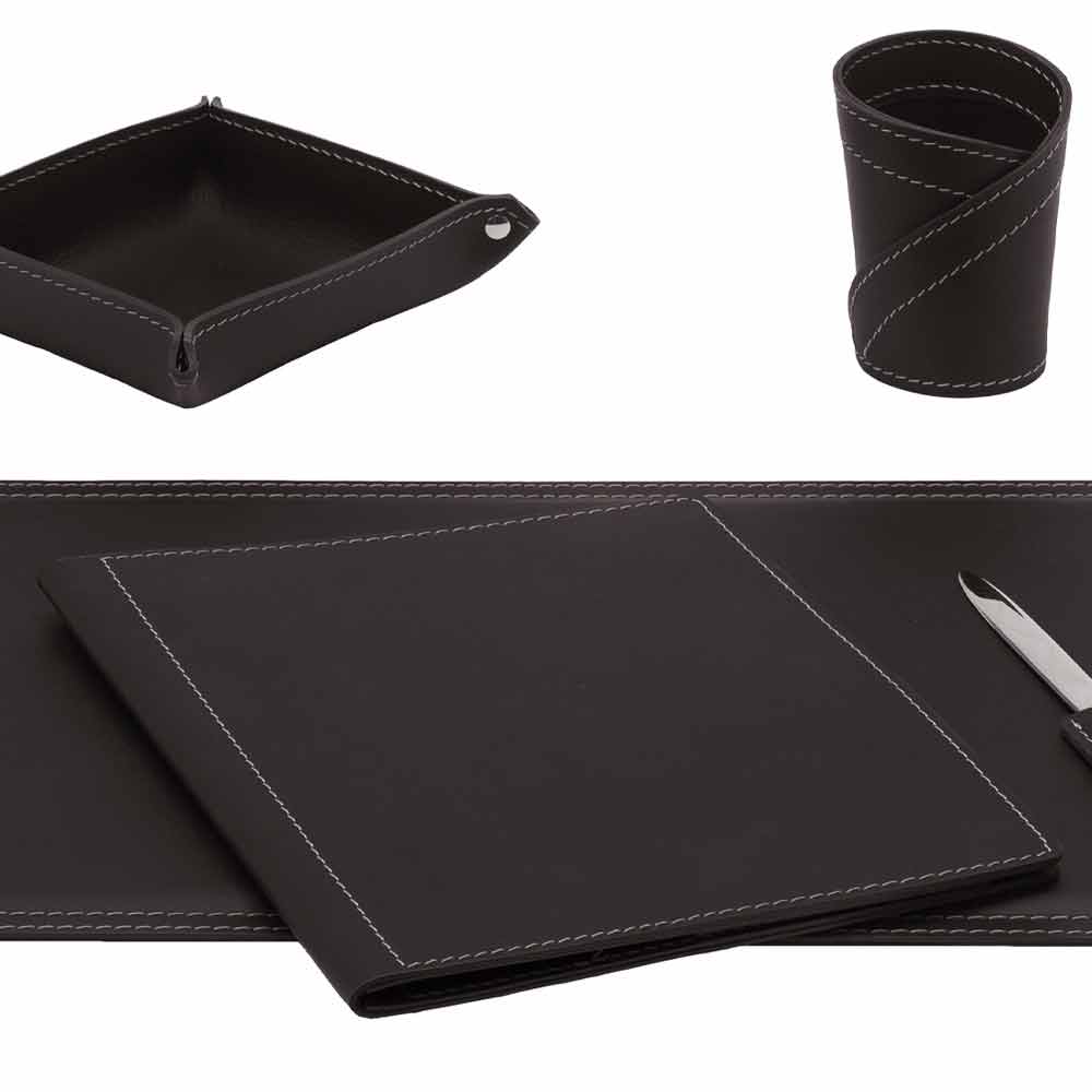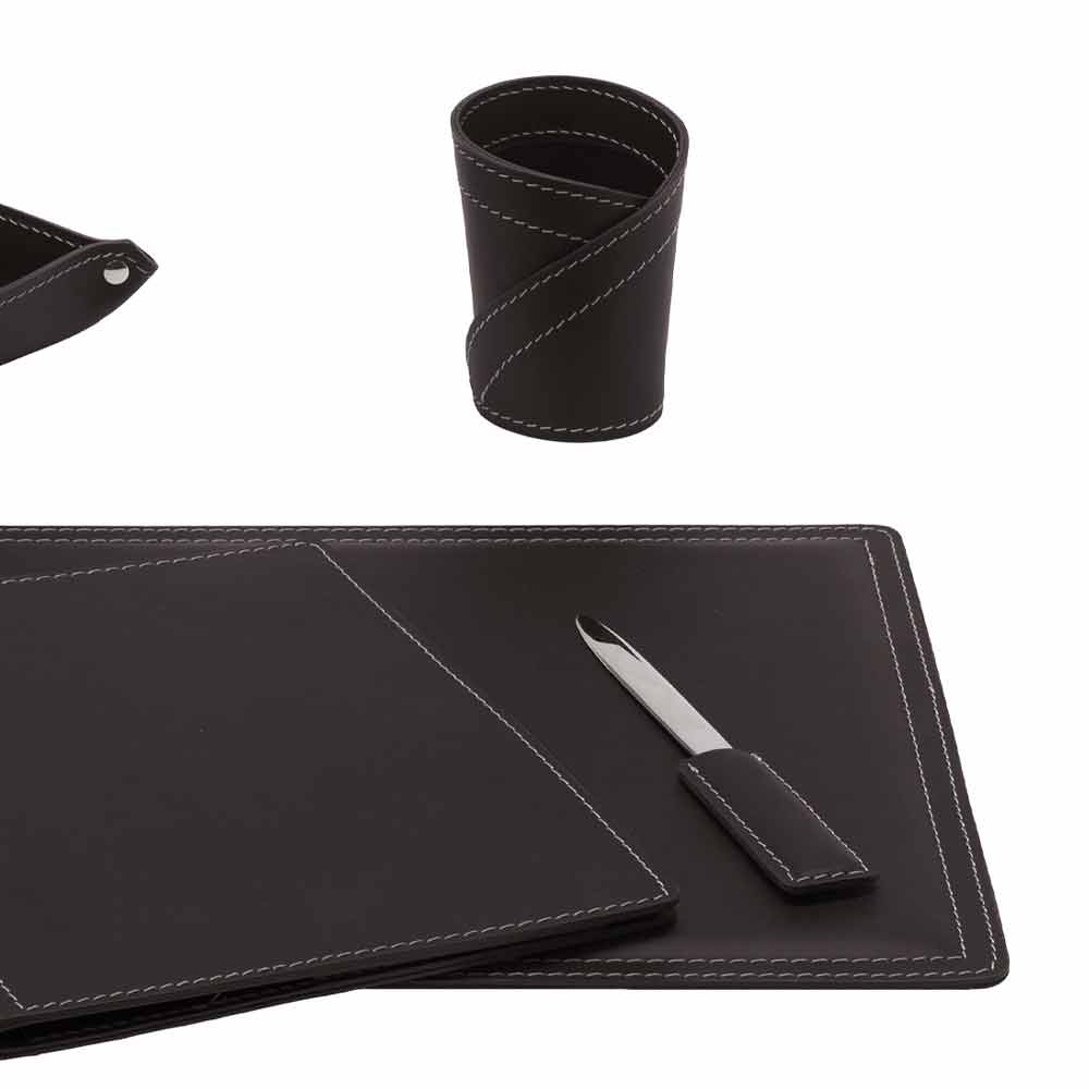 Desk accessories in bonded leather composed of 5 pieces Made in Italy Ascanio