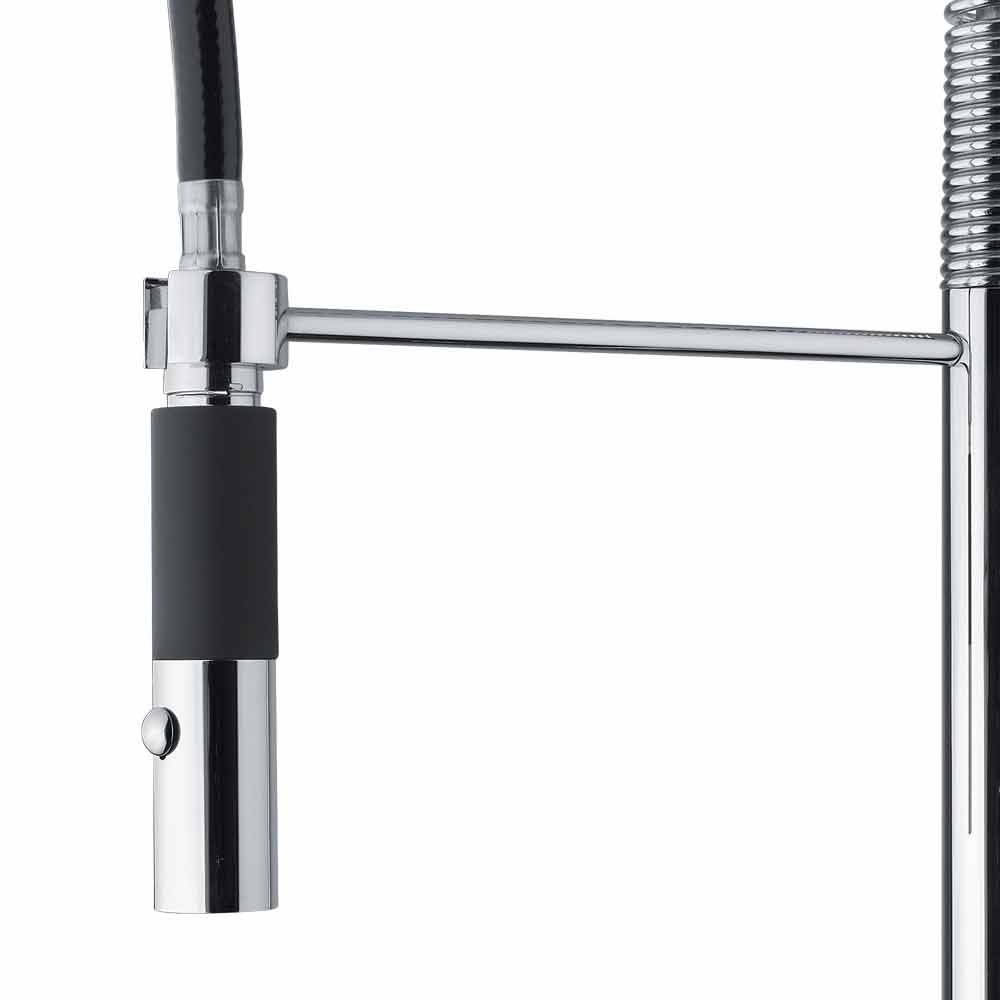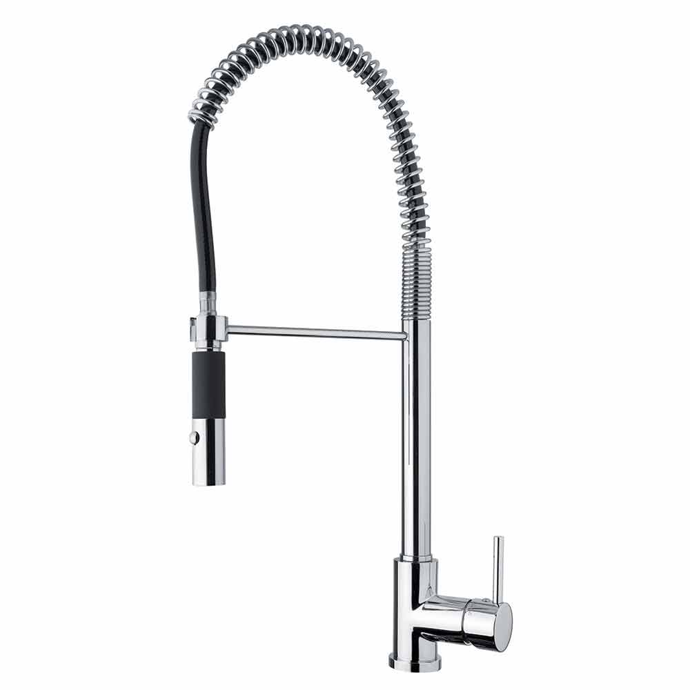 Kitchen sink mixermade in Italy in chromed brass . Thanks to the presence of the adjustable spout with spring and the 2-jet shower it is possible to maximize its functionality, allowing you to use the product in a completely simple and practical way. What makes it unique is the presence of a cartridge defined ES capable of supplying cold water when the lever is raised in the central position, avoiding the need for hot water from the boiler and thus allowing substantial energy savings.