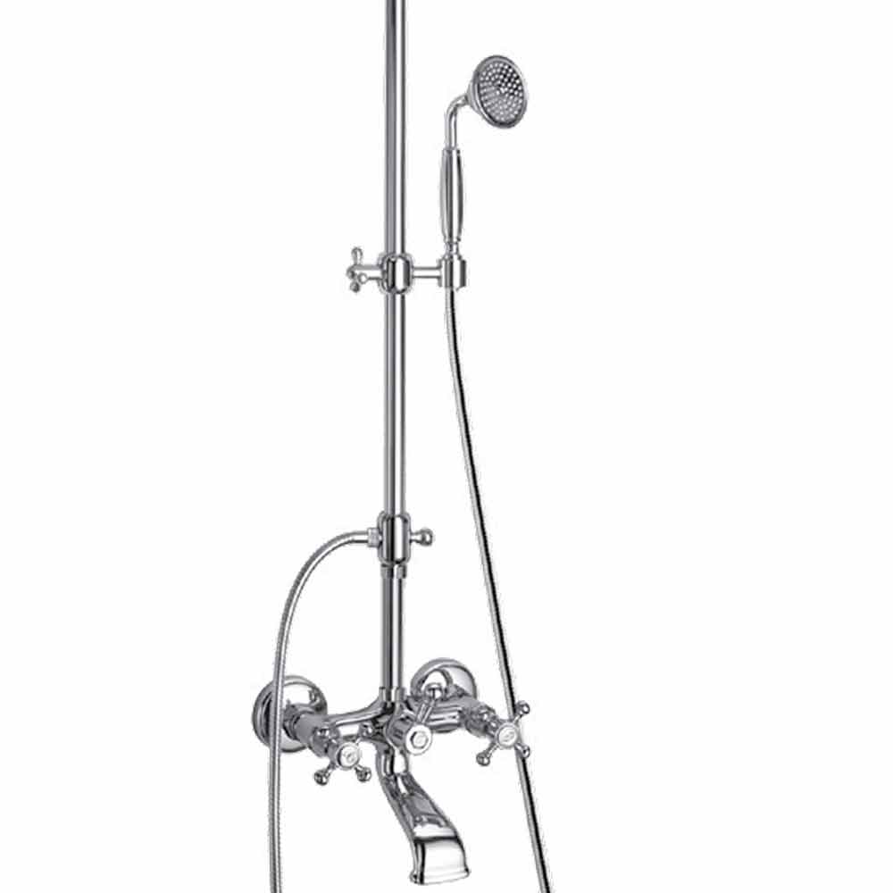 Classic brass shower column with integrated bathtub group, high quality Made in Italy.
