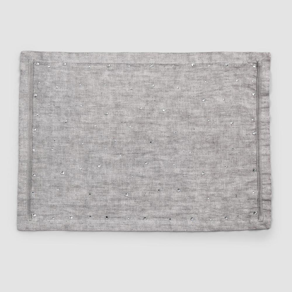 American anthracite gray linen placemat with crystals, 2 luxury pieces made in Italy.