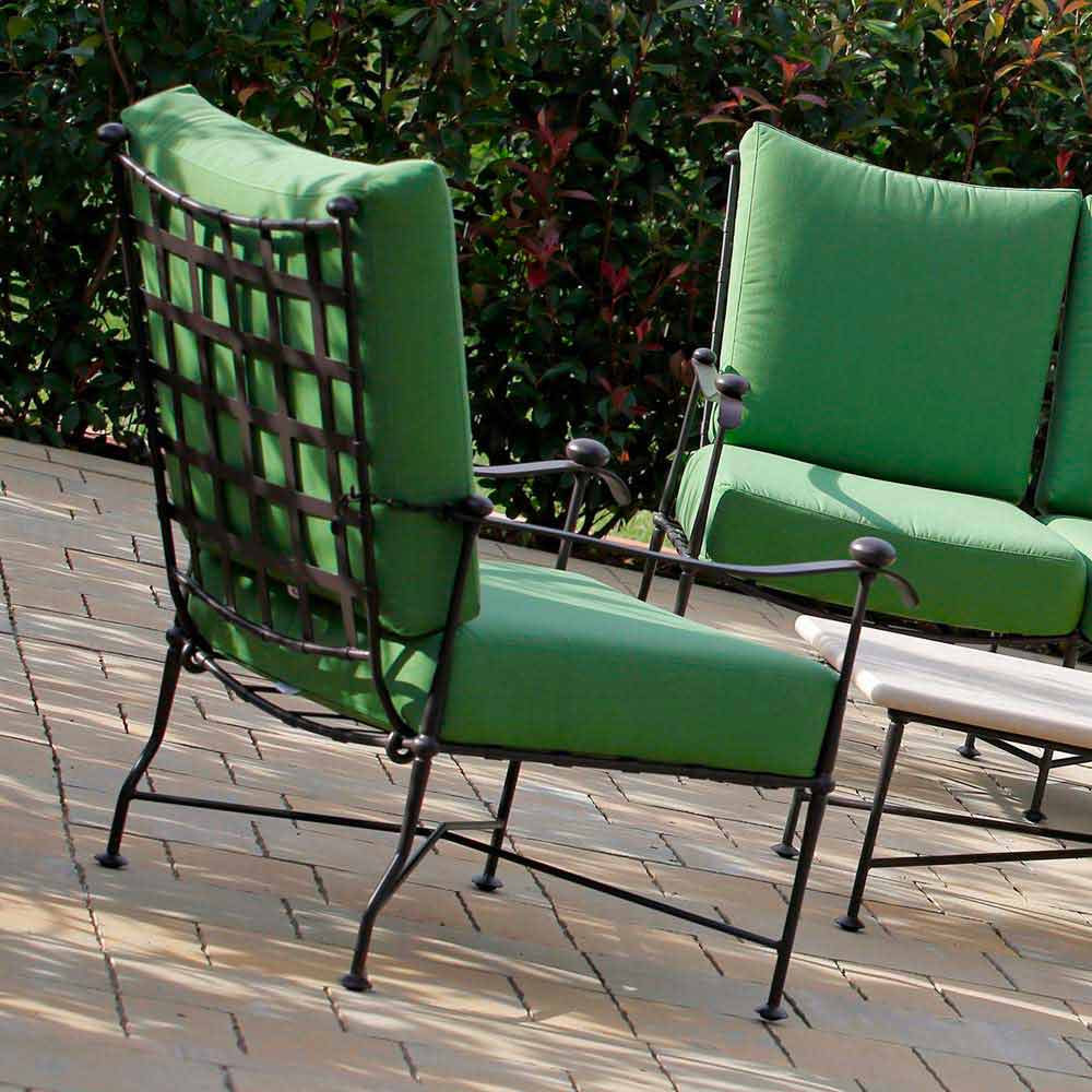 Handcrafted outdoor living room in painted iron with Made in Italy cushions.