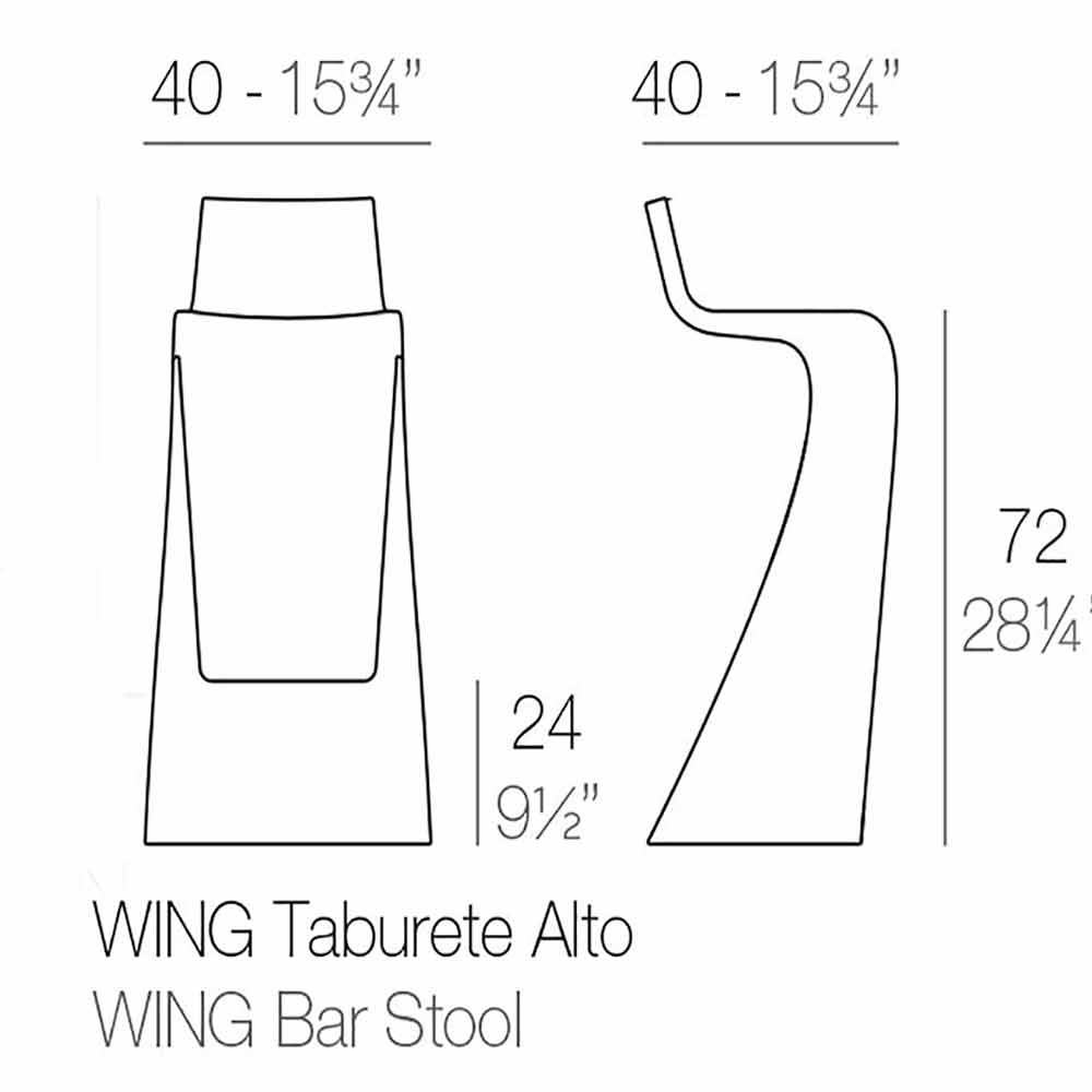 The Wing collection was made by the A-cero group. Born from the interweaving of straight lines and curves in a dynamic way. These curves and extreme angles represent a typical trait of architecture, moving towards a free, delicate and organic line, which generates movement and separates from any previous trace of excessive rigidity. These are bold pieces that make up a set of furniture with a huge visual impact. The Wing bar stool is made of polyethylene, a material resistant to shocks, UV rays and temperature changes. Perfect therefore for outdoor spaces.