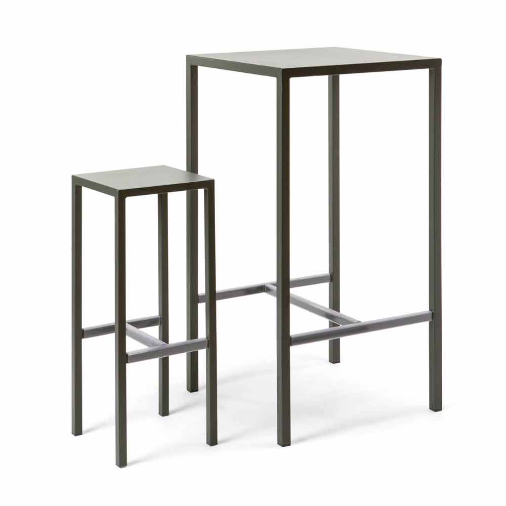 Modern bar table with 4 stools entirely made of painted metal, Made in Italy.