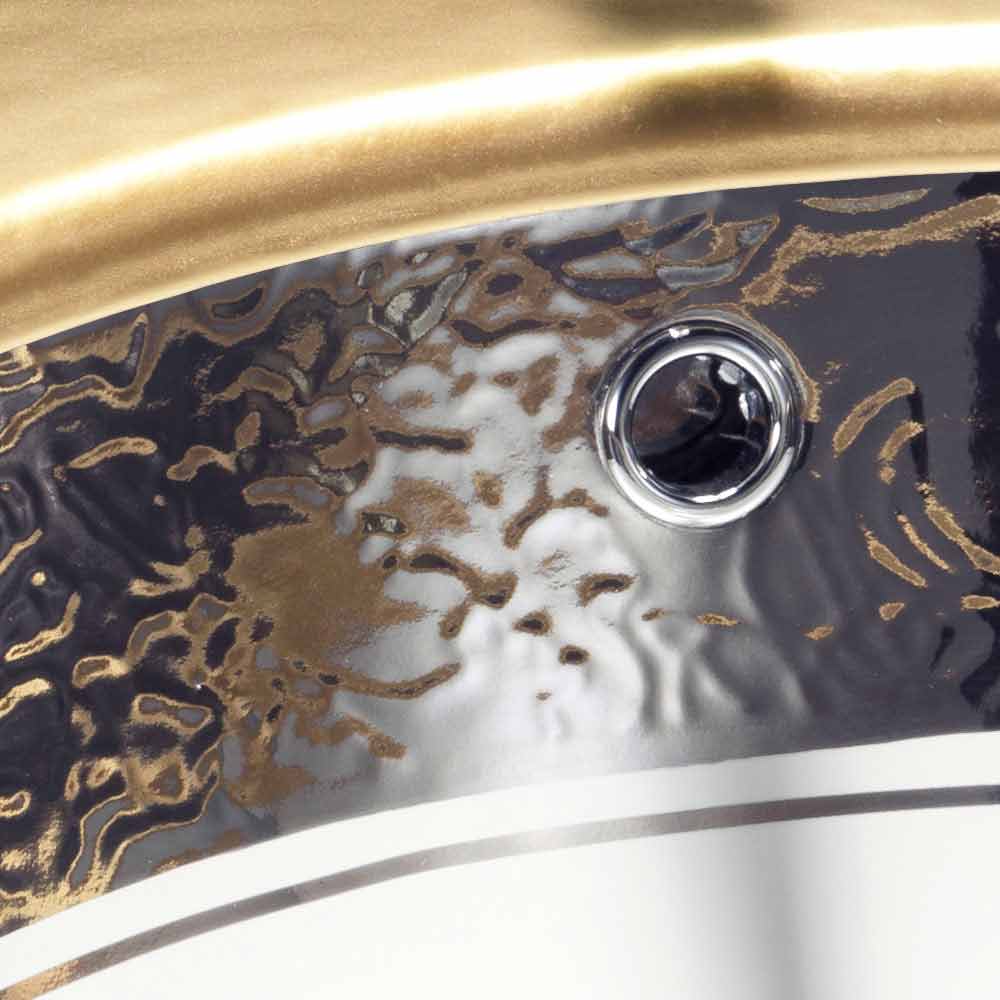 Bathroom built in sink made in Italy in fire clay, handmade, with bas-relief effect stripe and braid eith platinum finish.