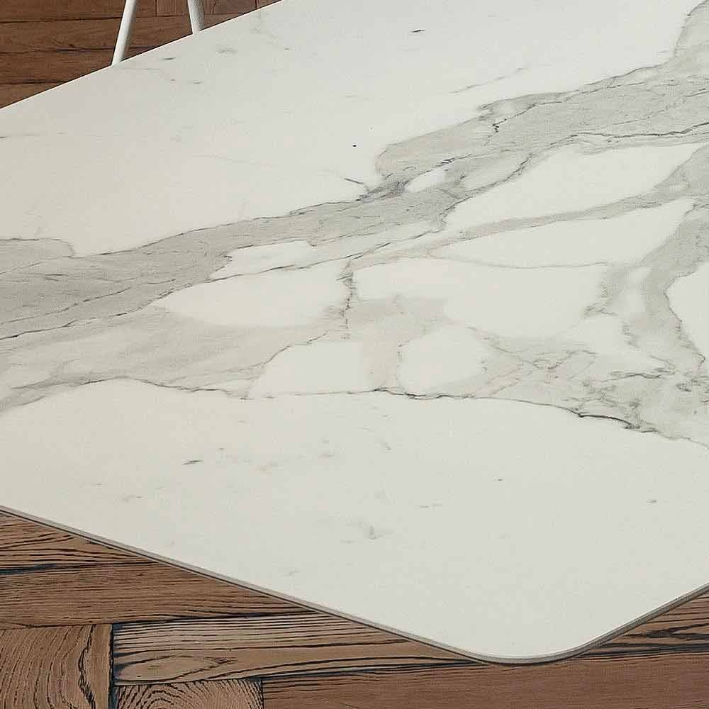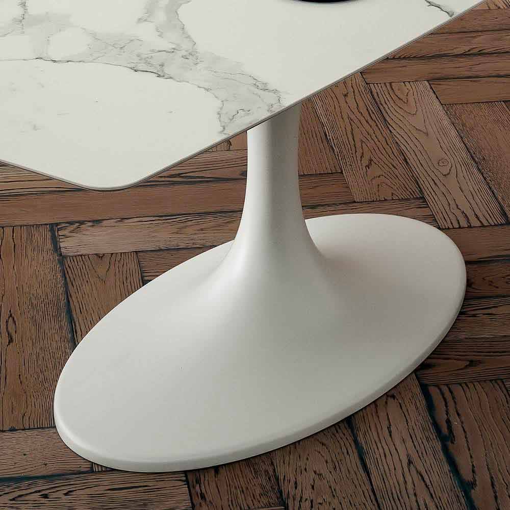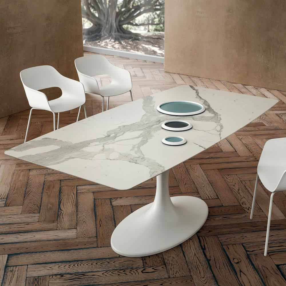 Kitchen table with barrel top in laminam and marble base Made in Italy, high quality.