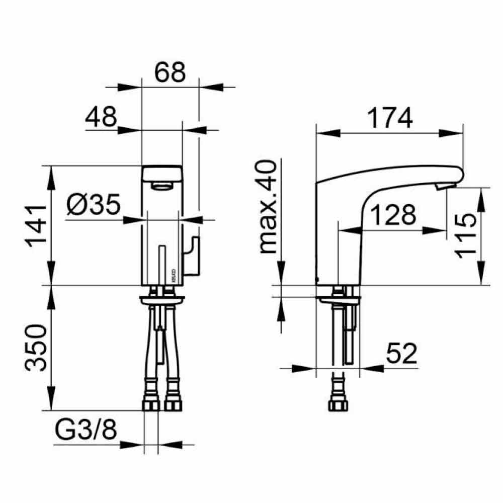 Modern bathroom sink tap made of brass with chrome finish and equipped with a practical infrared sensor .