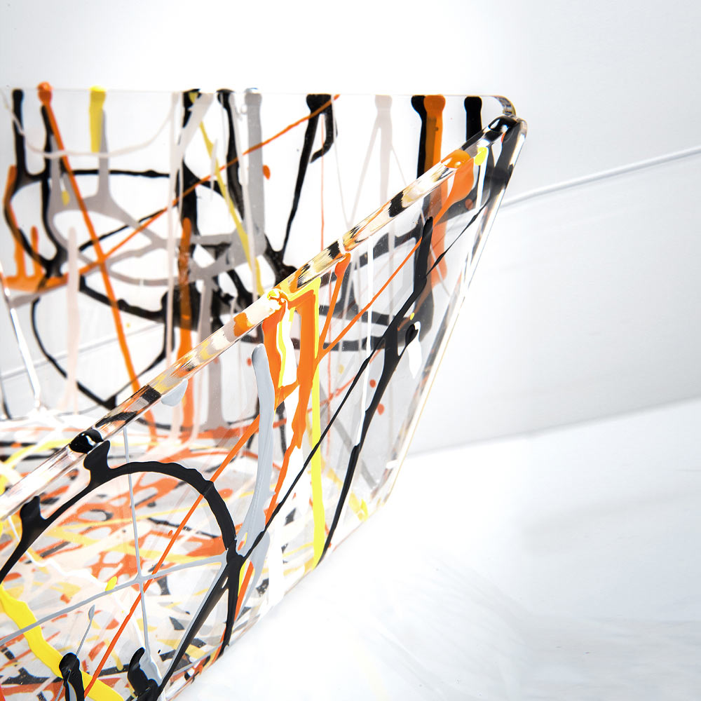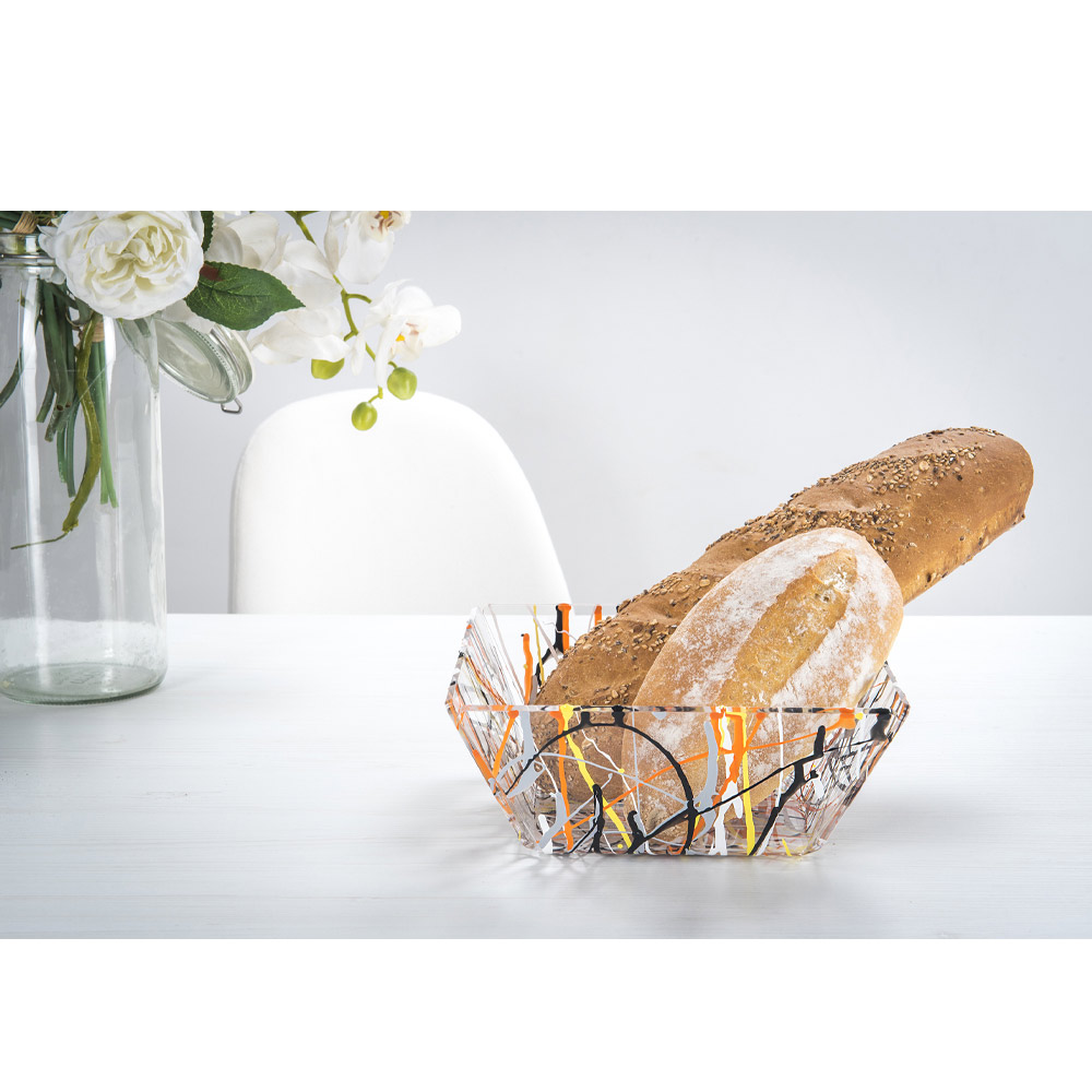 Bread basket designed e Ā made in Italy in transparent plexiglass 100% from virgin polymer. Ideal for serving drinks and food. Resistant, elegant and refined, it has an original and geometric design and is suitable for any occasion, thanks also to its brightness and brilliance that remain constant and unaltered over time.
