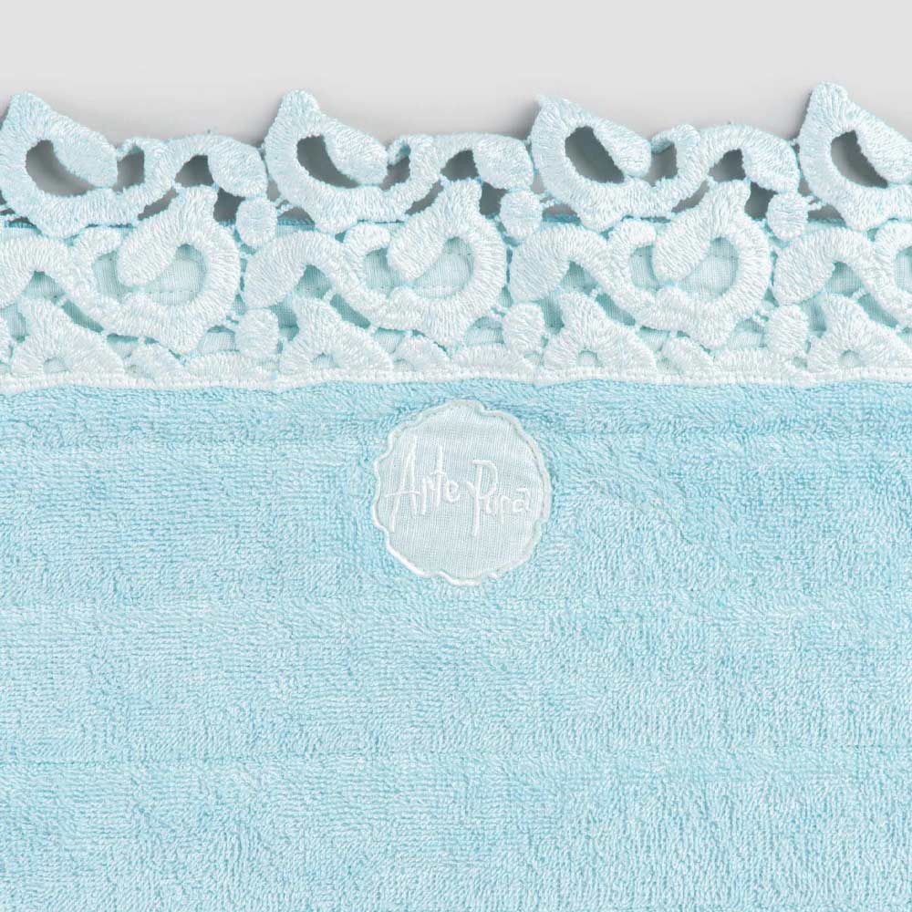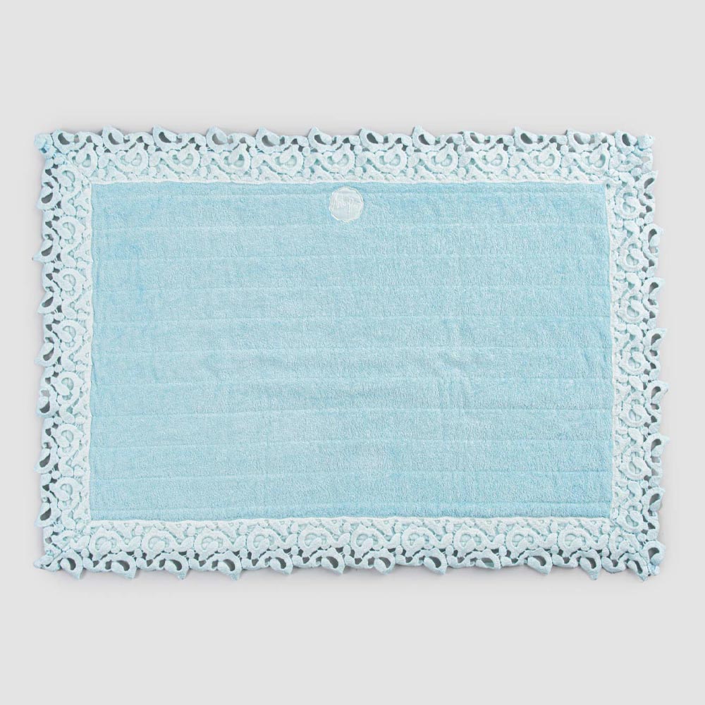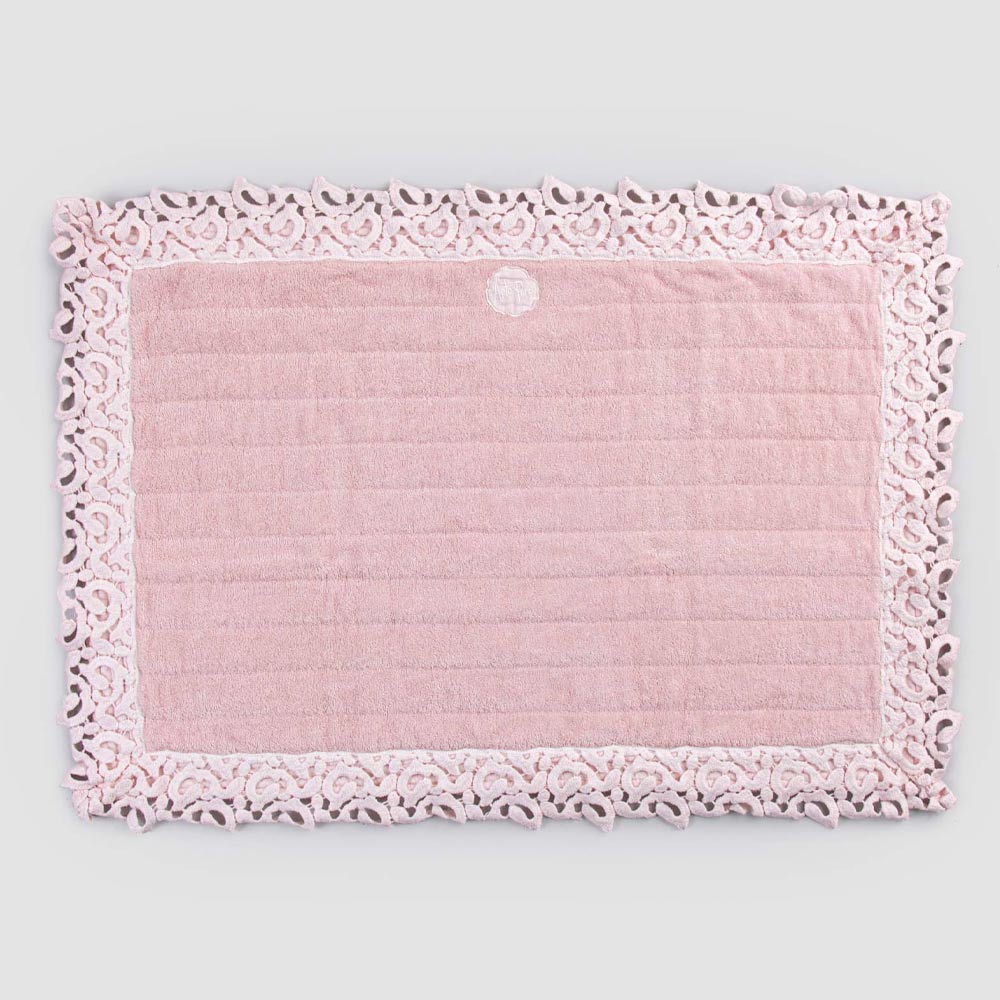 Terry bath mat with linen border and poem lace, 2 finishes made in Italy.