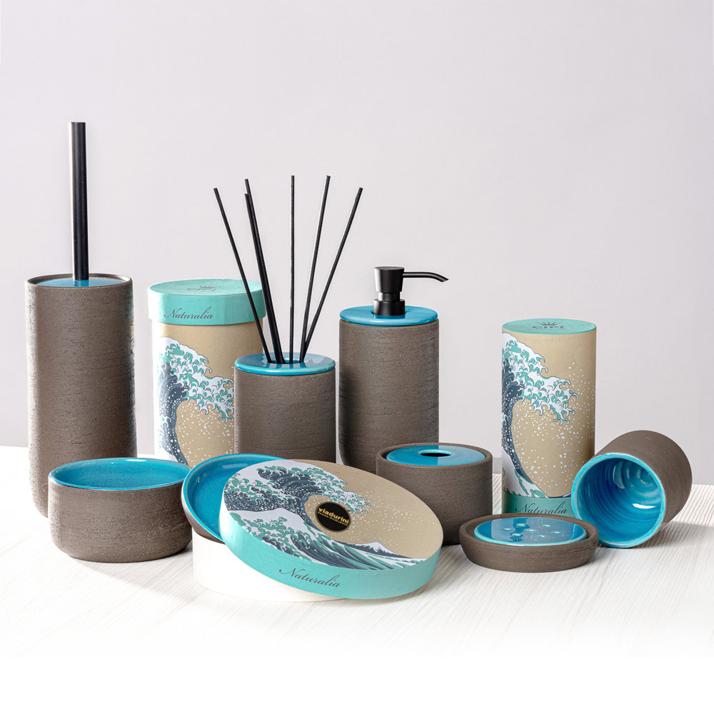 towel holder in natural leather, on the other hand, becomes the protagonist when combined with the