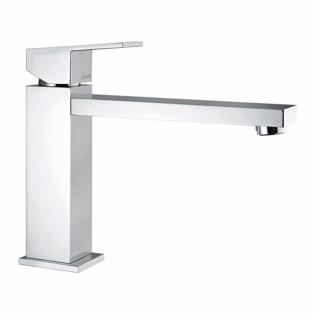 Modern bathroom sink mixer in chrome finish brass with Made in Italy drain.