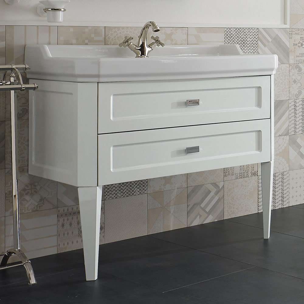 Biancospino bathroom cabinet with two drawers and ceramic sink Made in Italy