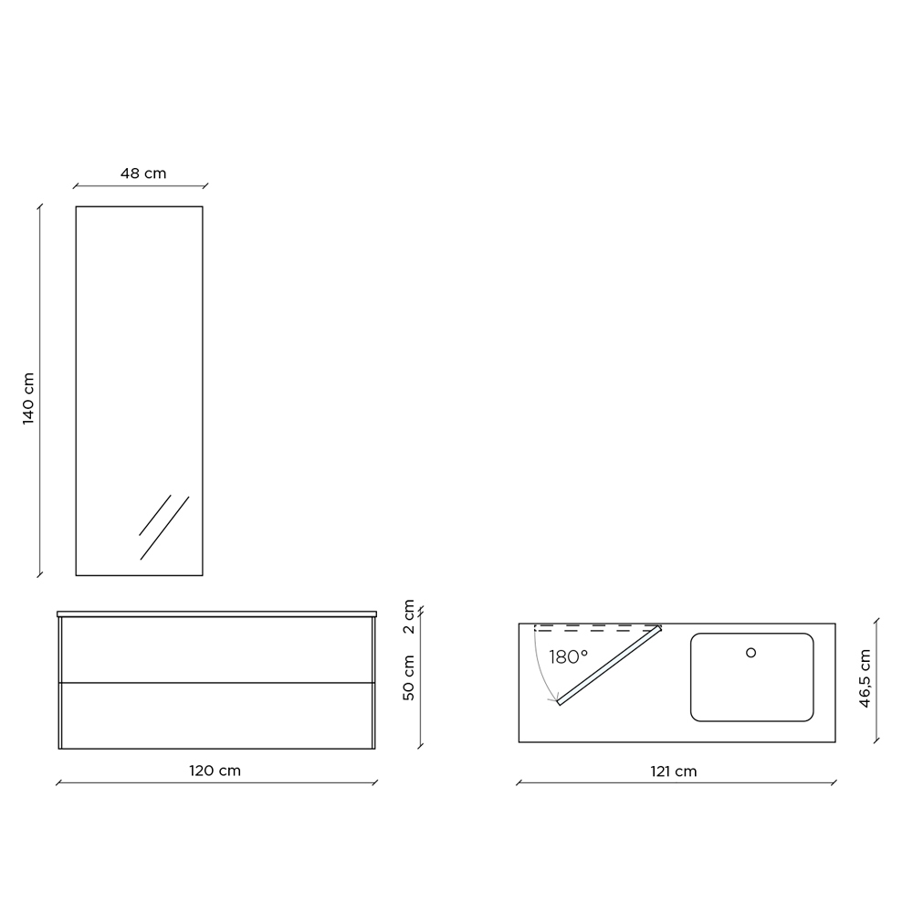 Dimensions: Base: L 120cm x D 46.5cm x H 52cm Mirror: H 140cm x W 48cm
