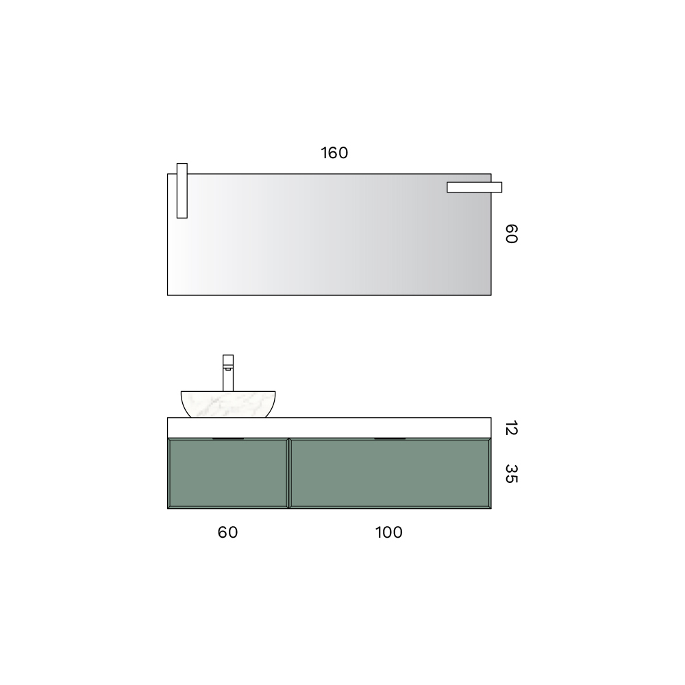The wall-mounted bathroom cabinet with double drawers offers ample storage capacity and maximum everyday functionality. The sage finish adds a natural and sophisticated touch, ideal for modern and elegant bathrooms .