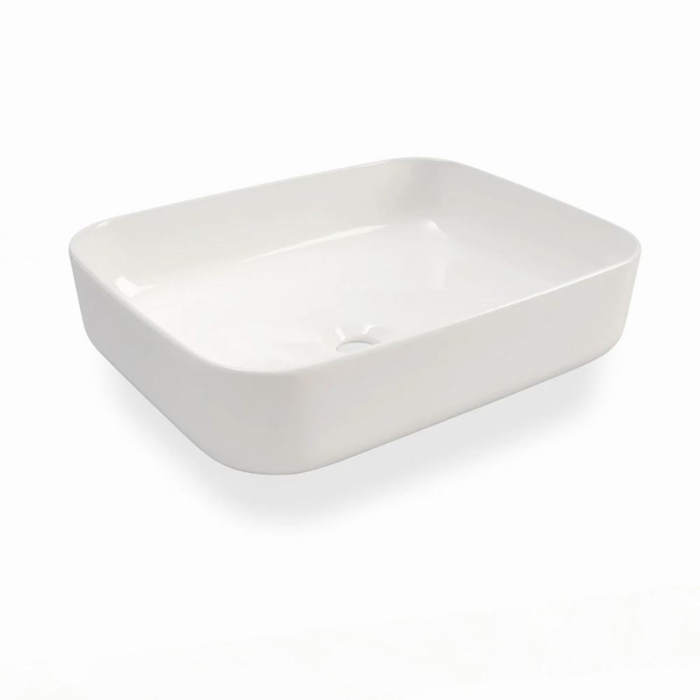 The glossy white ceramic countertop washbasin , with its simple and harmonious lines, brightens the space and ensures maximum practicality for everyday use. A piece that combines modern aesthetics and comfort.