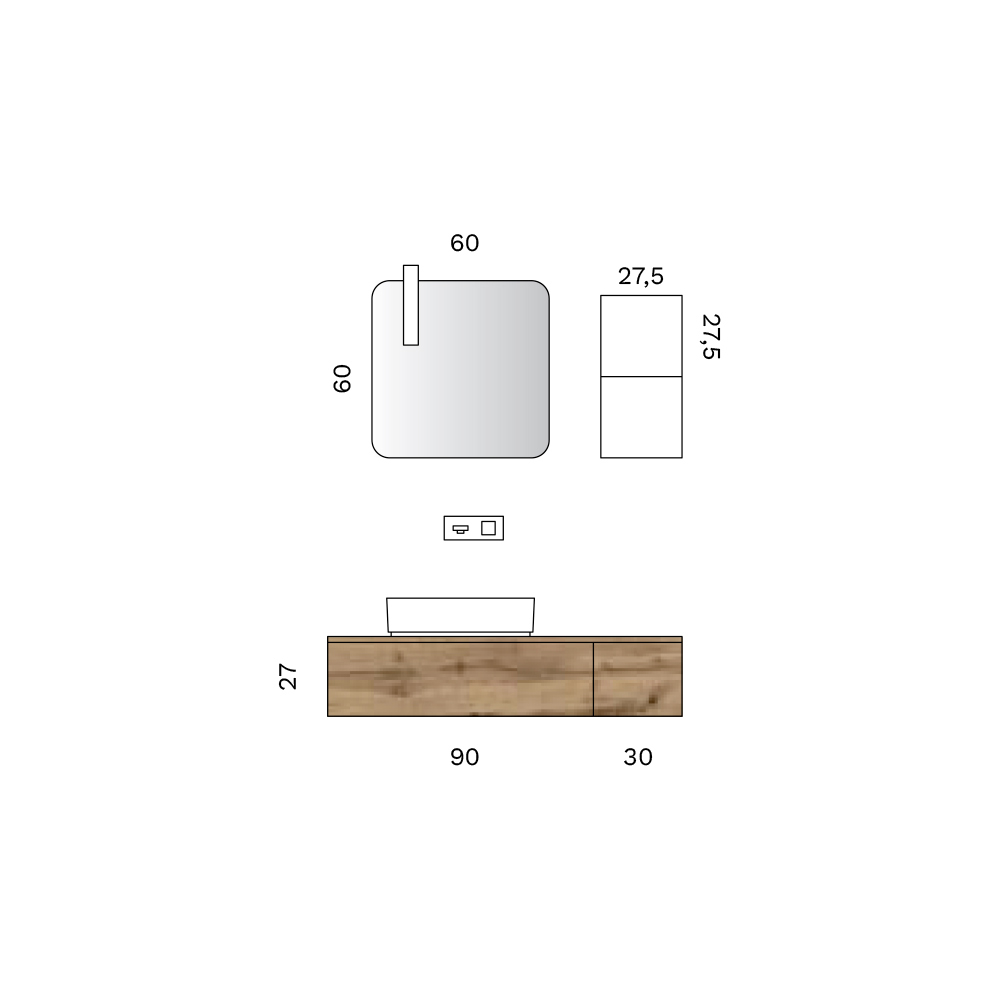 • Wall cabinet: length 27.5 cm x depth 27.5 cm x height 18 cm each