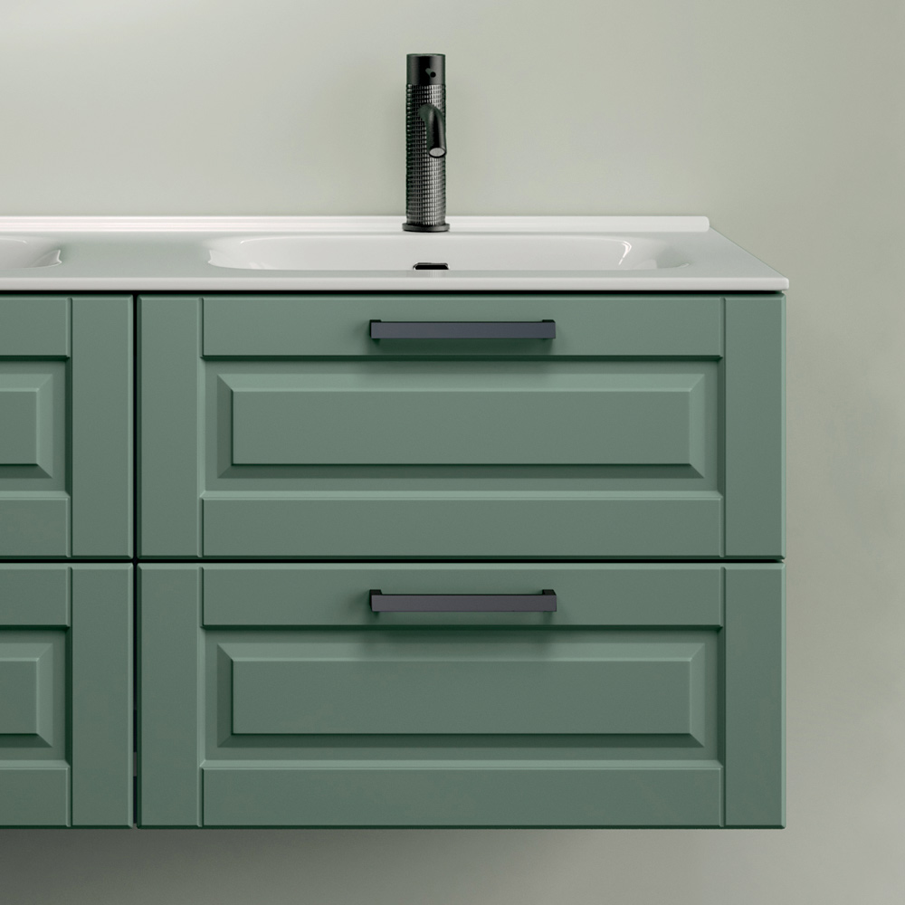A bathroom composition with a refined and contemporary character, defined by the elegant matt sage finish , a sophisticated shade that gives personality and harmony to the room.
