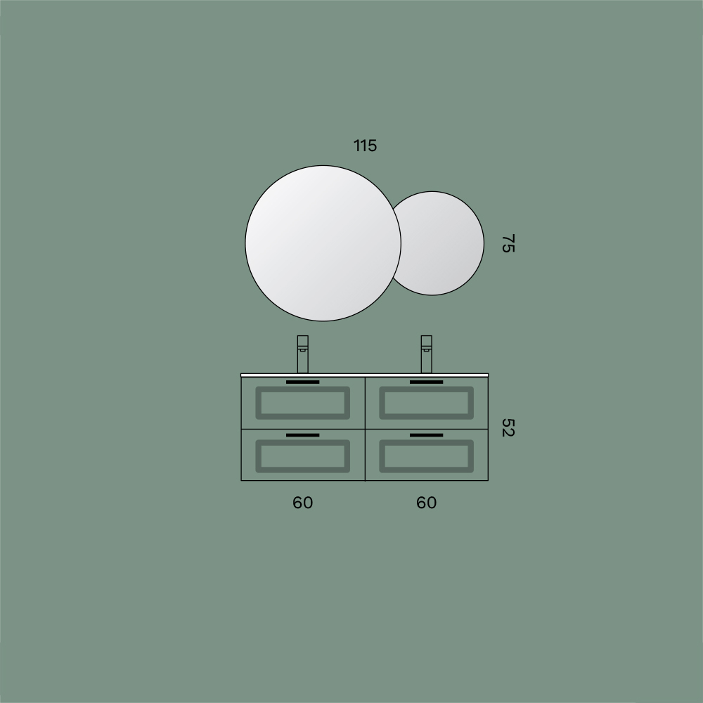 Bathroom Composition with 4 Sage Green Drawers, Mirror and Sinks - Magnolia
