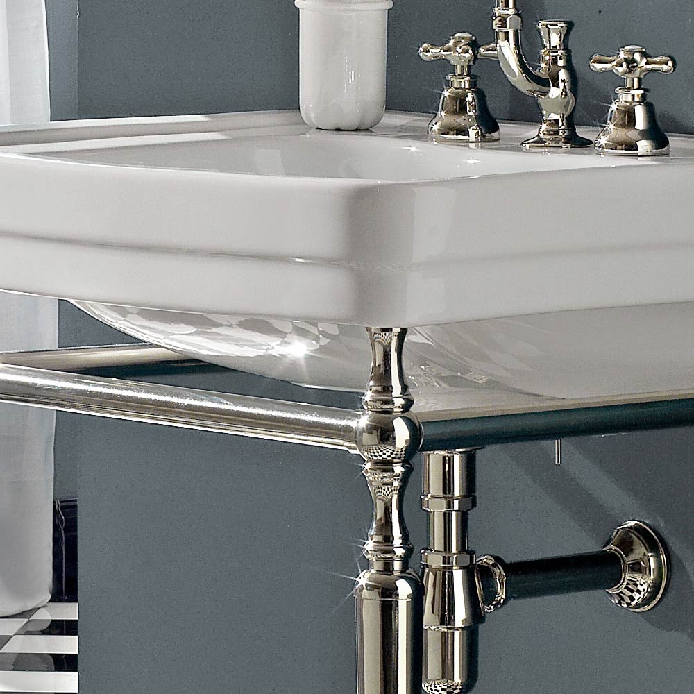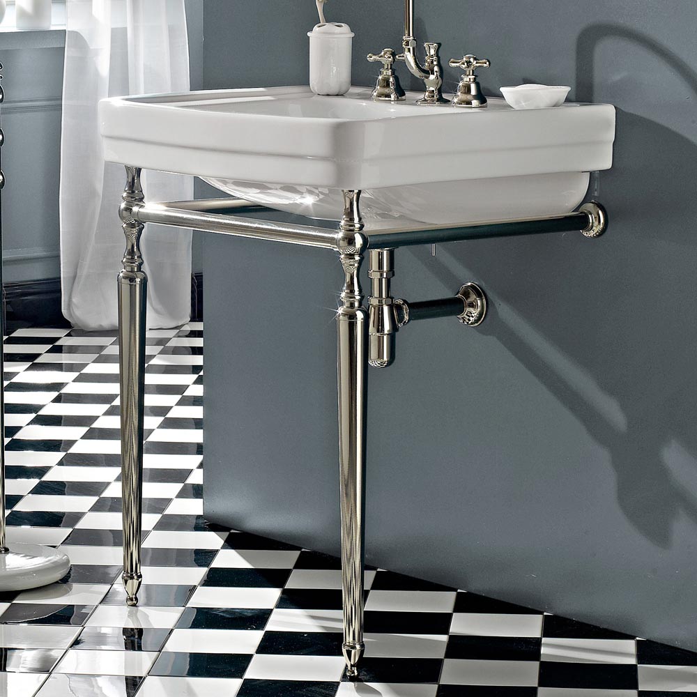 The style of this console sink can be defined as neoclassical: design and retro lines bring to mind