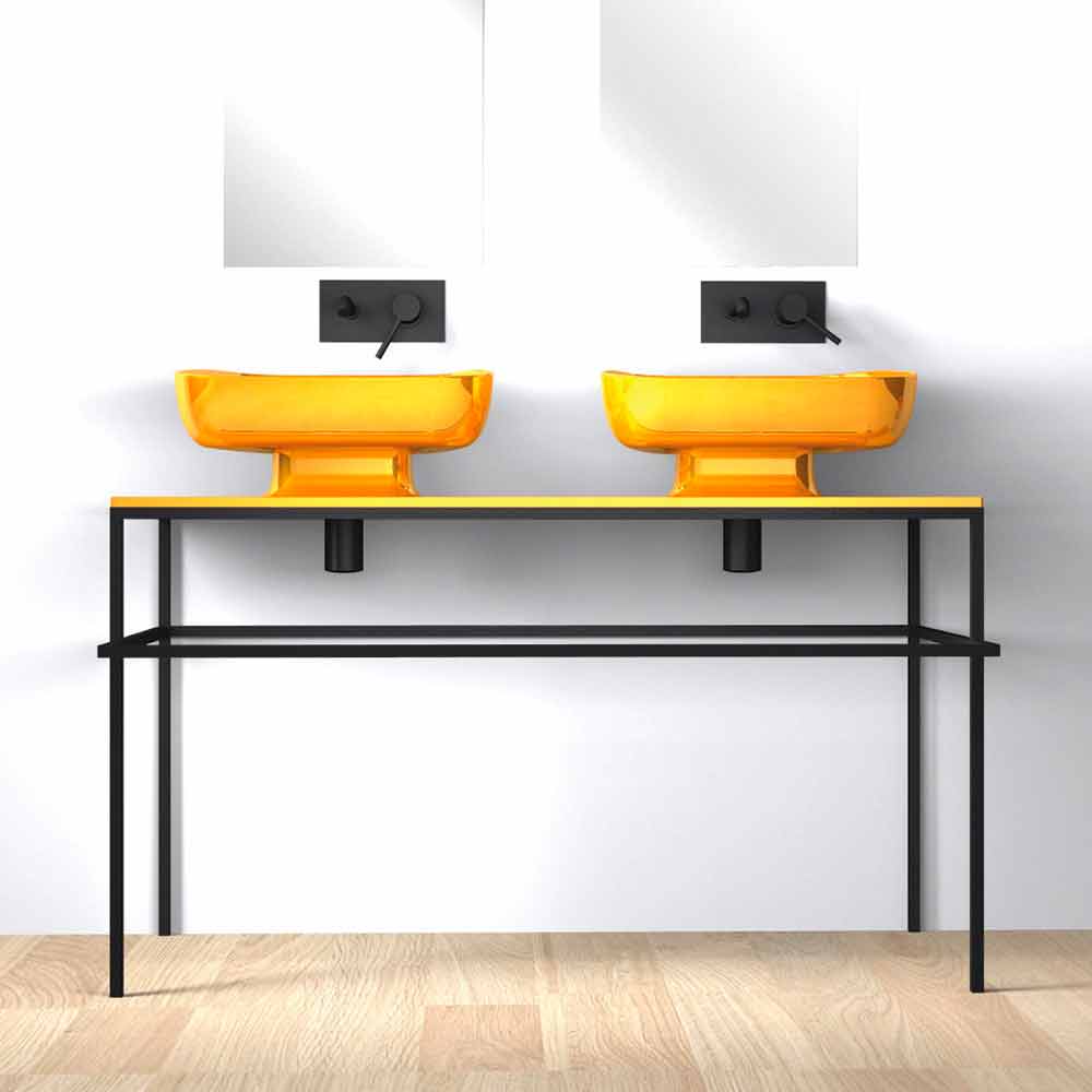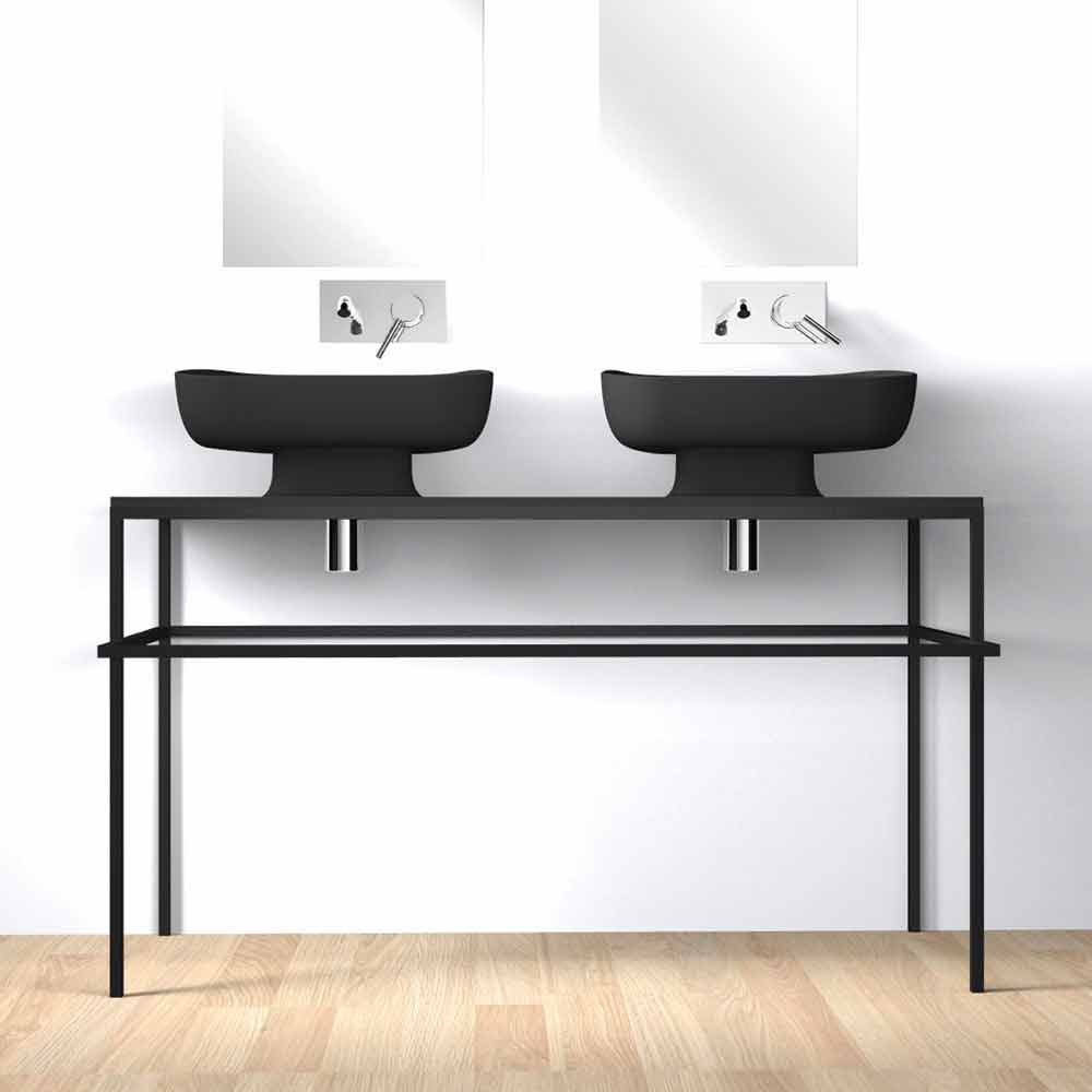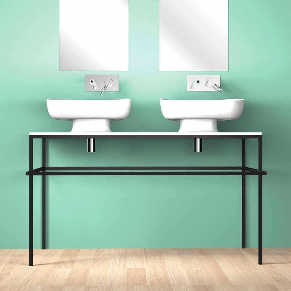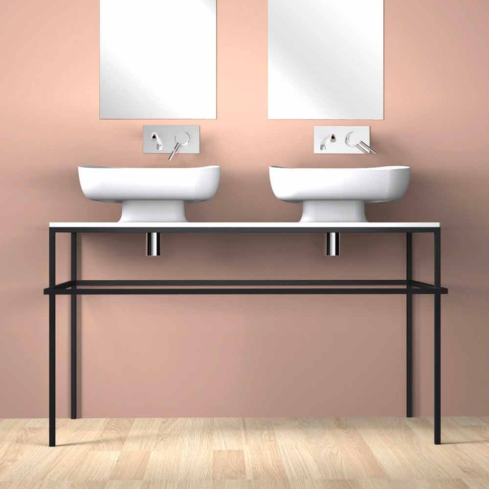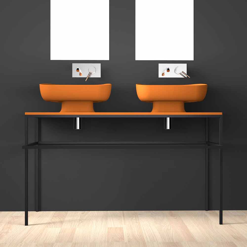 Double countertop bathroom sink in pottery made in Italy, Reale