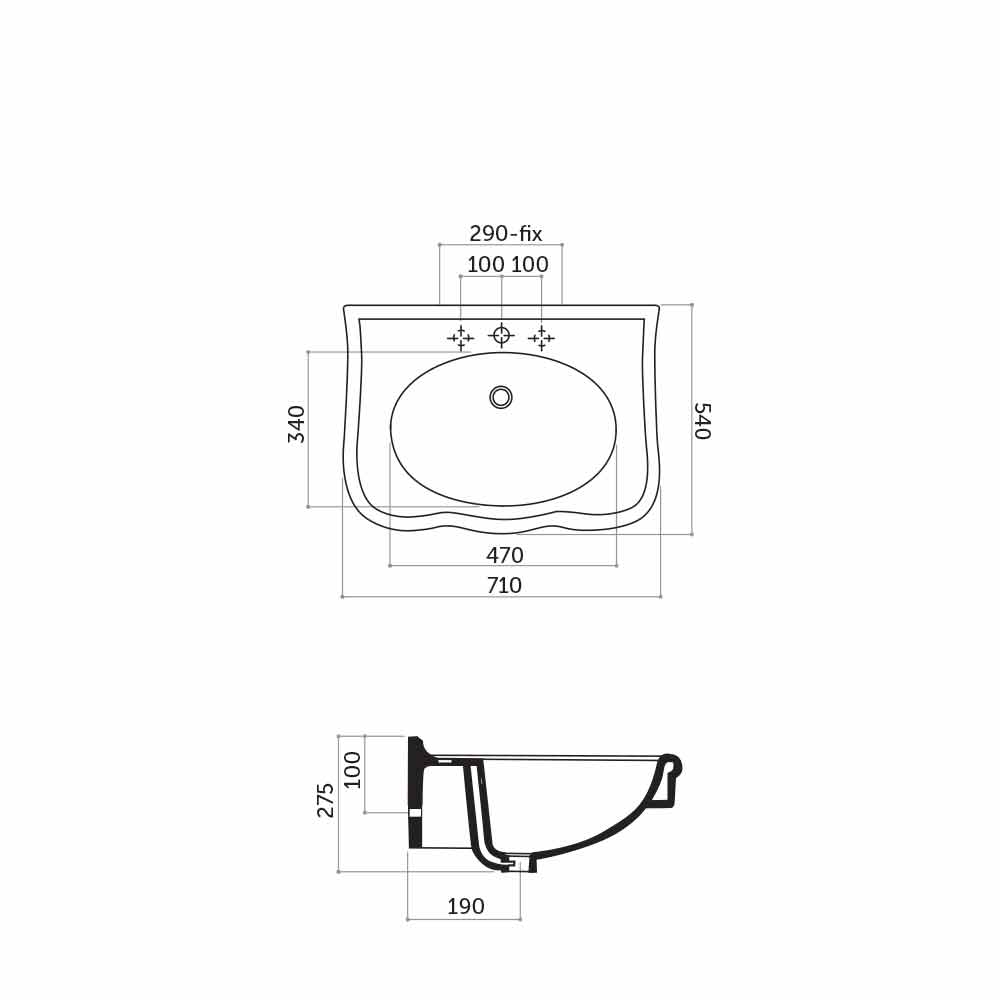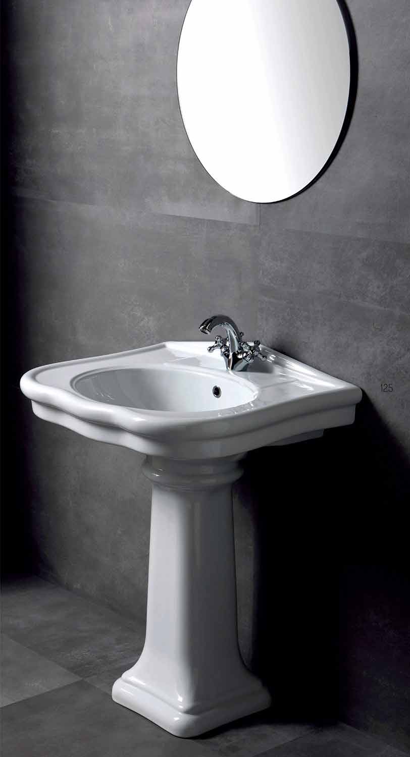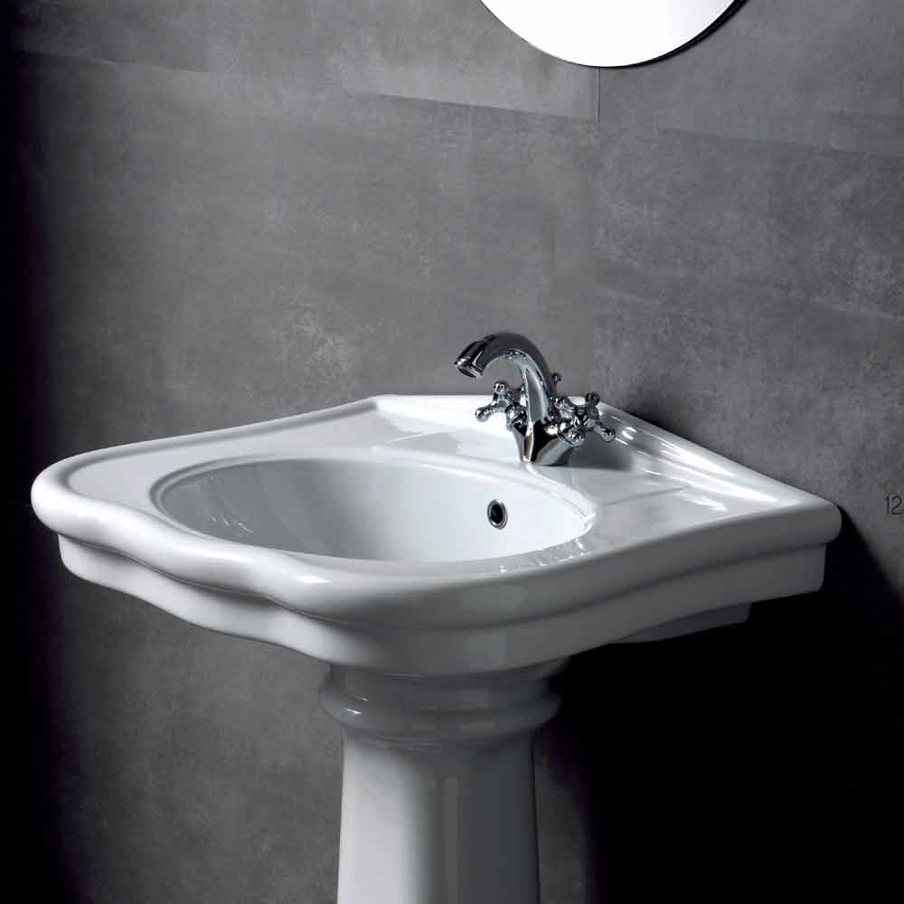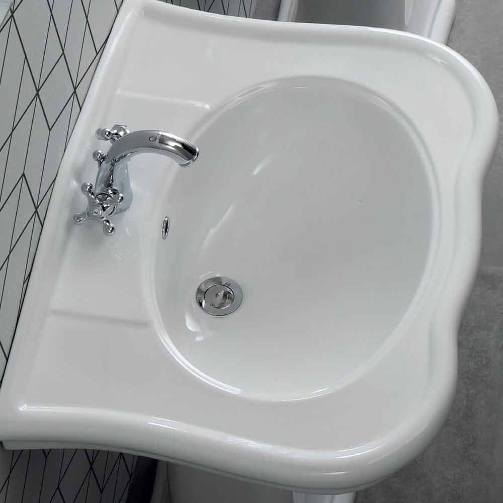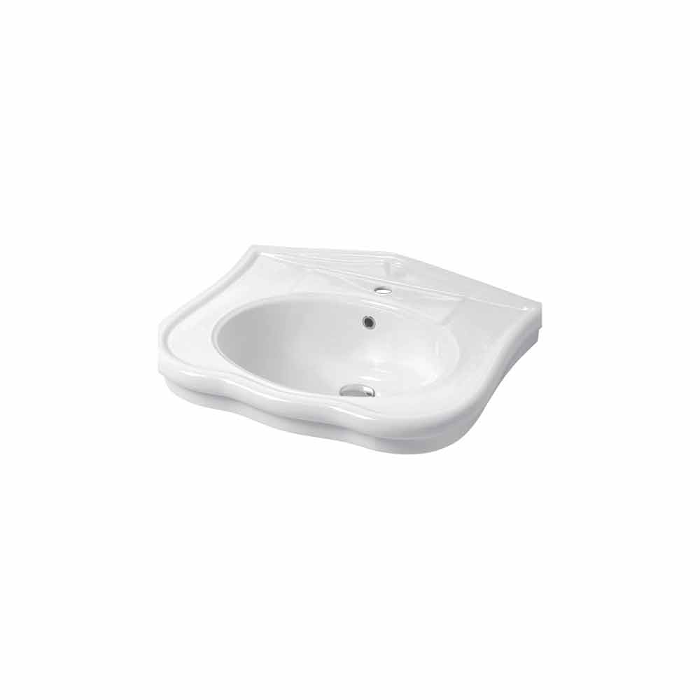 The sink Avise is equipped with a central hole and it is available in the wall-mounted version or the one with column. It is realized in vitreous china, a kind of glazed ceramic cooked at 1200°. It is a material resistant to acid, heat, bumps and scratches. It is hygenic, easy to clean and it does not fade over time.