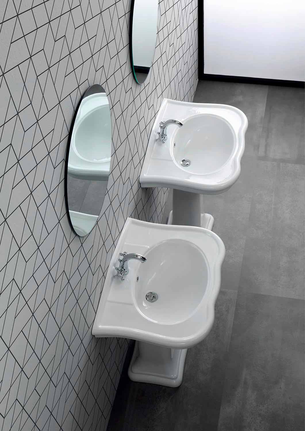 Classic shapes meet a design with a modern recall, in the Avise collection. A new idea of decor where the traditional style lines acquire lightness toward a minimal and balance direction. The products of this line are timeless classic, ideal for refined bathrooms with a decor touch.