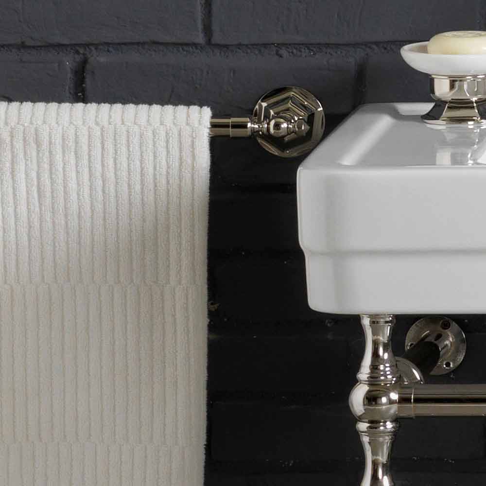 Bathroom set with double console in white ceramic on Linear structure Linear is a beautiful and fascinating bathroom furniture composition made entirely of white ceramic, with a 900 'style. This beautiful composition includes an elegant and spacious double washbasin fixed to the wall and resting on a structure in the elegant polished nickel finish that creates delicate light points. The metal structure consists of the base enriched with a useful and functional grid. To give a further touch of light to the entire composition, Linear includes two beautiful bridge taps with chain, complete with siphons and drain. Another peculiarity of this fantastic composition is contained in the two beautiful rectangular and tilting mirrors, enriched by a brass metal frame in brass with a glossy nickel finish. Linear is completed and enriched by the presence of a beautiful ceramic countertop soap holder with chromed details and a toothbrush holder in the same design. Linear is designed to bring a touch of 900 'style design to your home, always maintaining a certain modernity and elegance. Made up of elegantly squared lines, Linear fits harmoniously into any type of furniture. Bring a touch of style to your home too! Washbasin fixed to the wall using the supplied brackets!