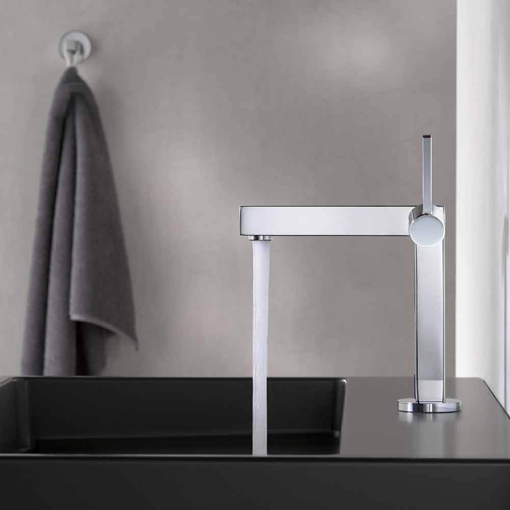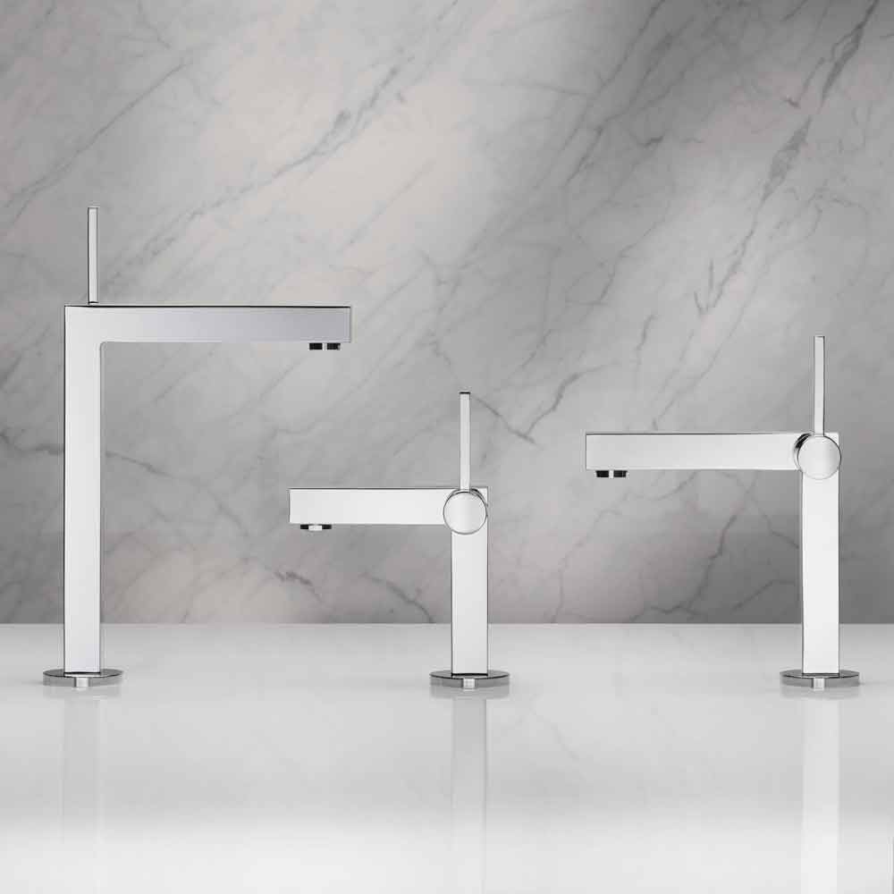 This wonderful and elegant line of bathroom taps combines round and square shapes to create unique and luxurious environments. Characterized by precise contours and extremely bright surfaces thanks to the chrome plating of the brass, these furnishing accessories will represent an exclusive design capable of revolutionizing your furniture in an elegant and refined way.